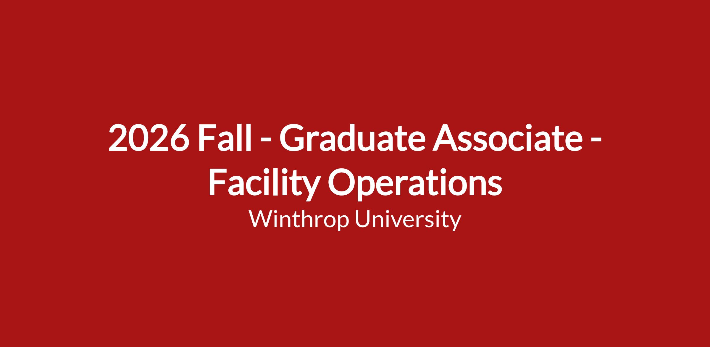 Bachelorβs degree required. Prior experience working with recreational facilities preferred. Any offer is contingent upon acceptance and enrollment in the Graduate School at Winthrop University.