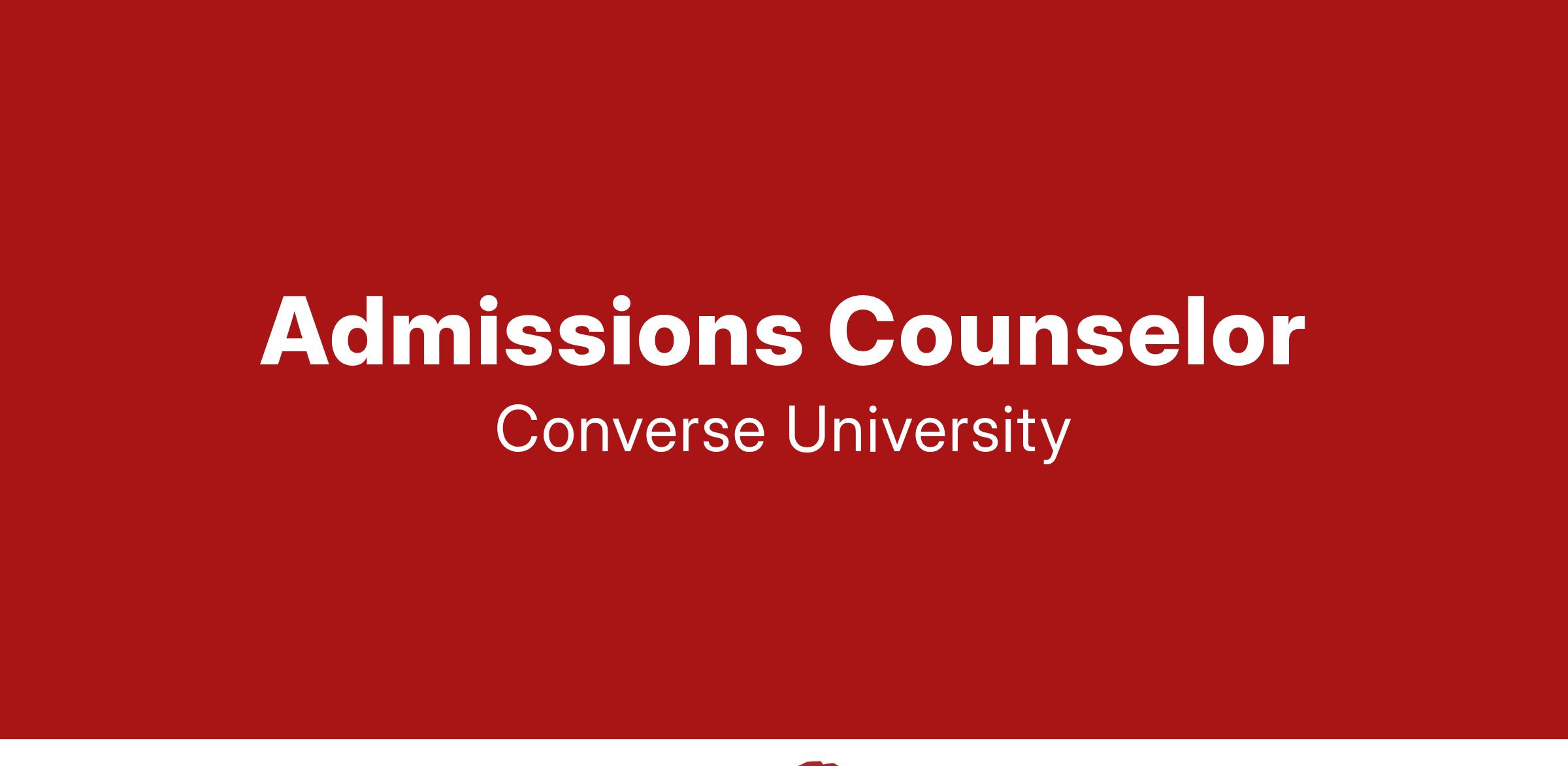SUMMARY OF POSITION: The Admissions Counselor will, through a courteous, helpful, unbiased and professional manner, be an integral component of the Converse University Admissions team. This position requires an enthusiastic, high-energy individual who is determined to meet Converse's enrollment goals. The individual must be committed to personal attention and follow up with prospective students and their families, and must be adept at matching the needs of prospective students with Converse's opportunities. The individual will be responsible for developing a plan of action to achieve University goals for their territory and/or student populations, and represents the University at off-site events (college fairs, school visits, community events, etc.) and on-campus functions.
