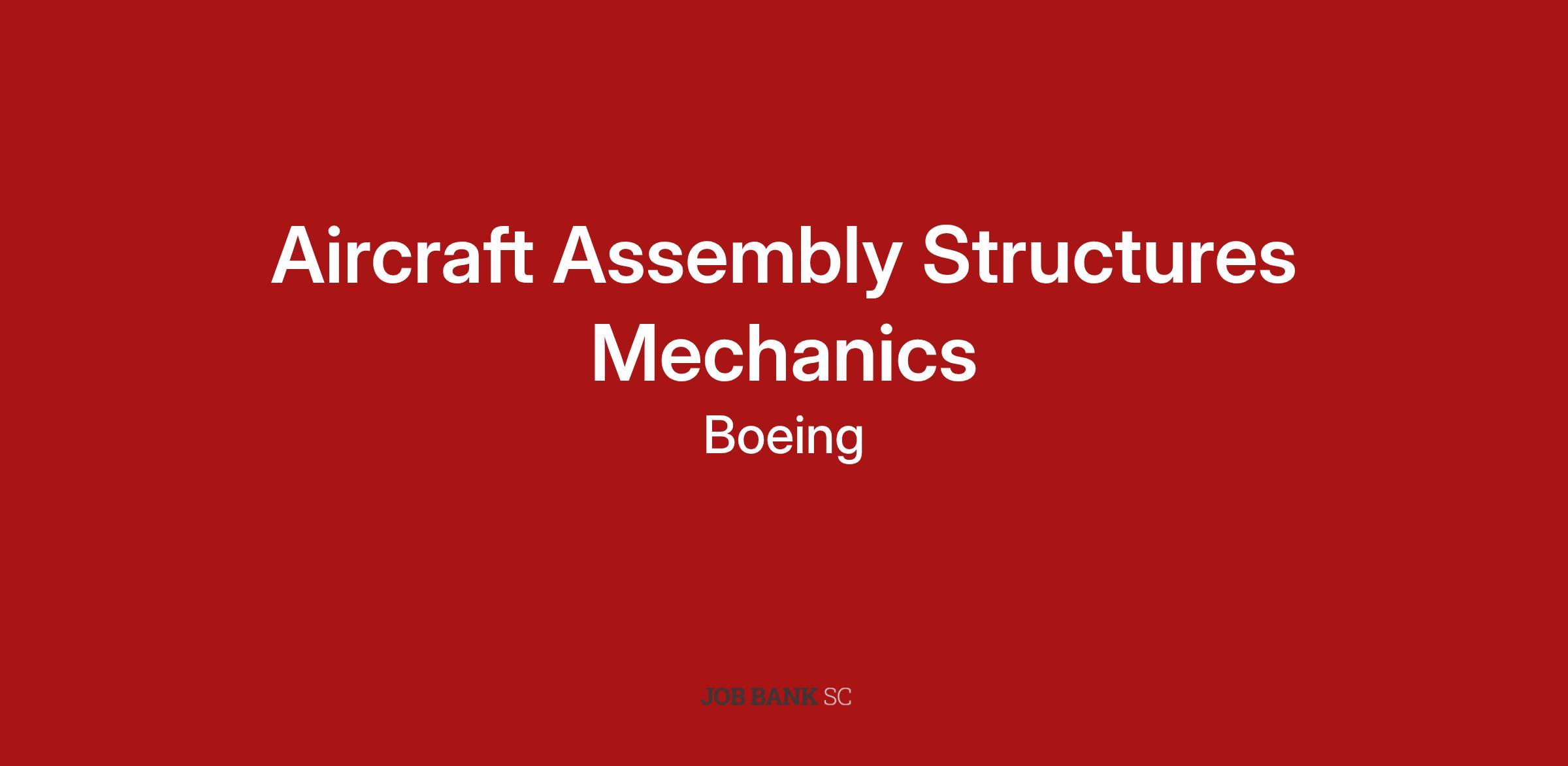 The Boeing CompanyBoeing Commercial AirplanesΒ is seeking Aircraft Assembly Structures Mechanics (Level B or C) to join our 787 production teams working inΒ North Charleston, South Carolina on a variable shift!