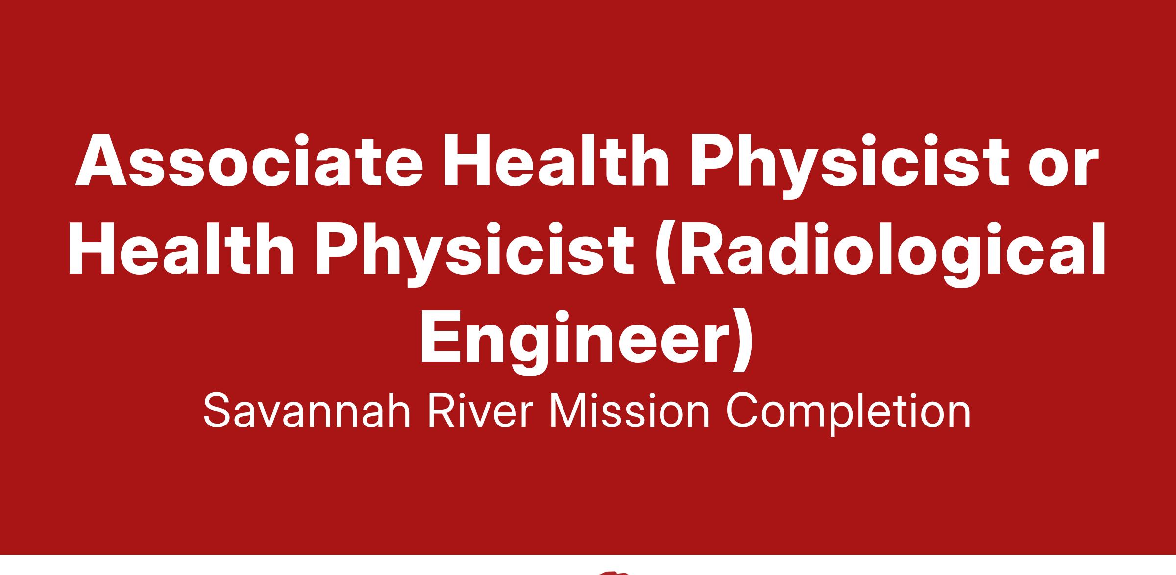 Savannah River Mission Completion (SRMC) is seeking anΒ Associate Health Physicist or Health Physicist (Radiological Engineer)Β to be based in our Aiken, SC location on the Savannah River Site (SRS).Β