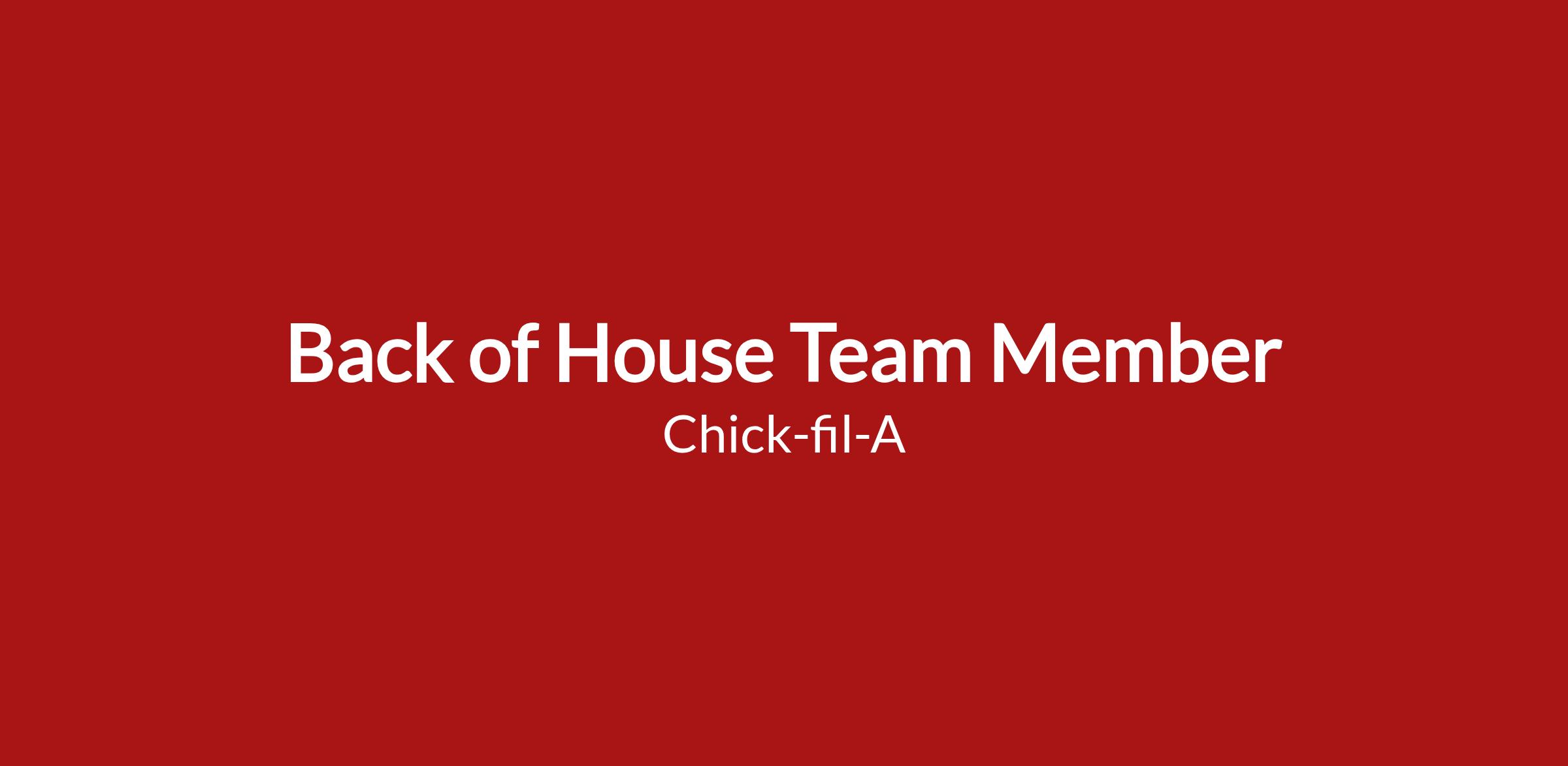 Chick-fil-A Back of House Team Member Needed