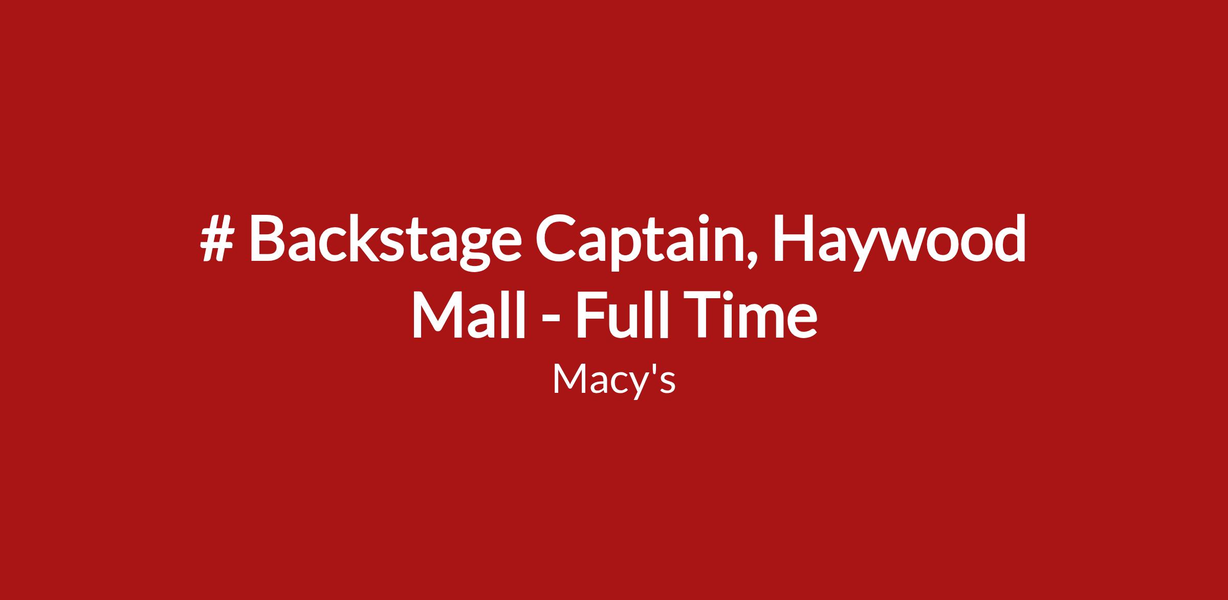 This job description is not all-inclusive and may not apply to colleagues covered by a collective bargaining agreement. Macy's Inc. reserves the right to amend this job description at any time. Macy's Inc. is an Equal Opportunity Employer, committed to an inclusive work environment.