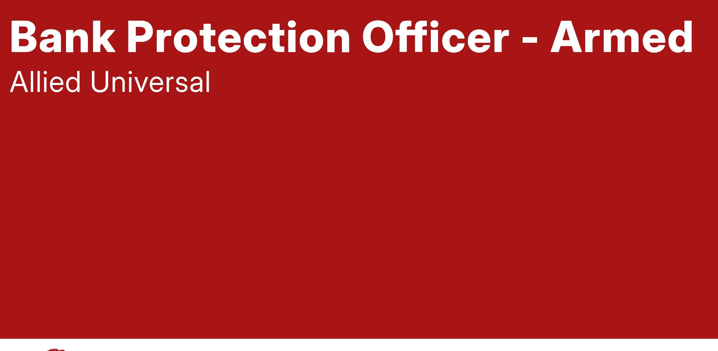 Allied Universalยฎ is hiring a Bank Protection Officer (BPO). The Bank Protection Officer will maintain visible position in exterior locations of retail banking centers, providing deterrence of criminal activity and misconduct. The Bank Protection Officer may be expected to handle potential conflict and must be able to interact with bank customers and associates in a courteous manner.