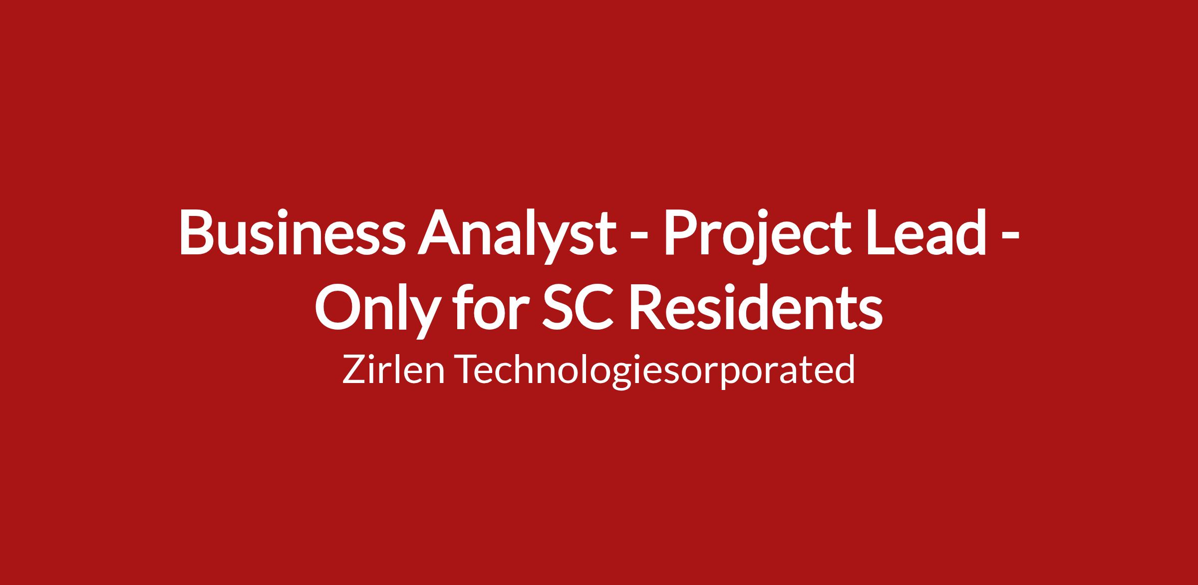 Business Analyst - Project Lead - State Government Project