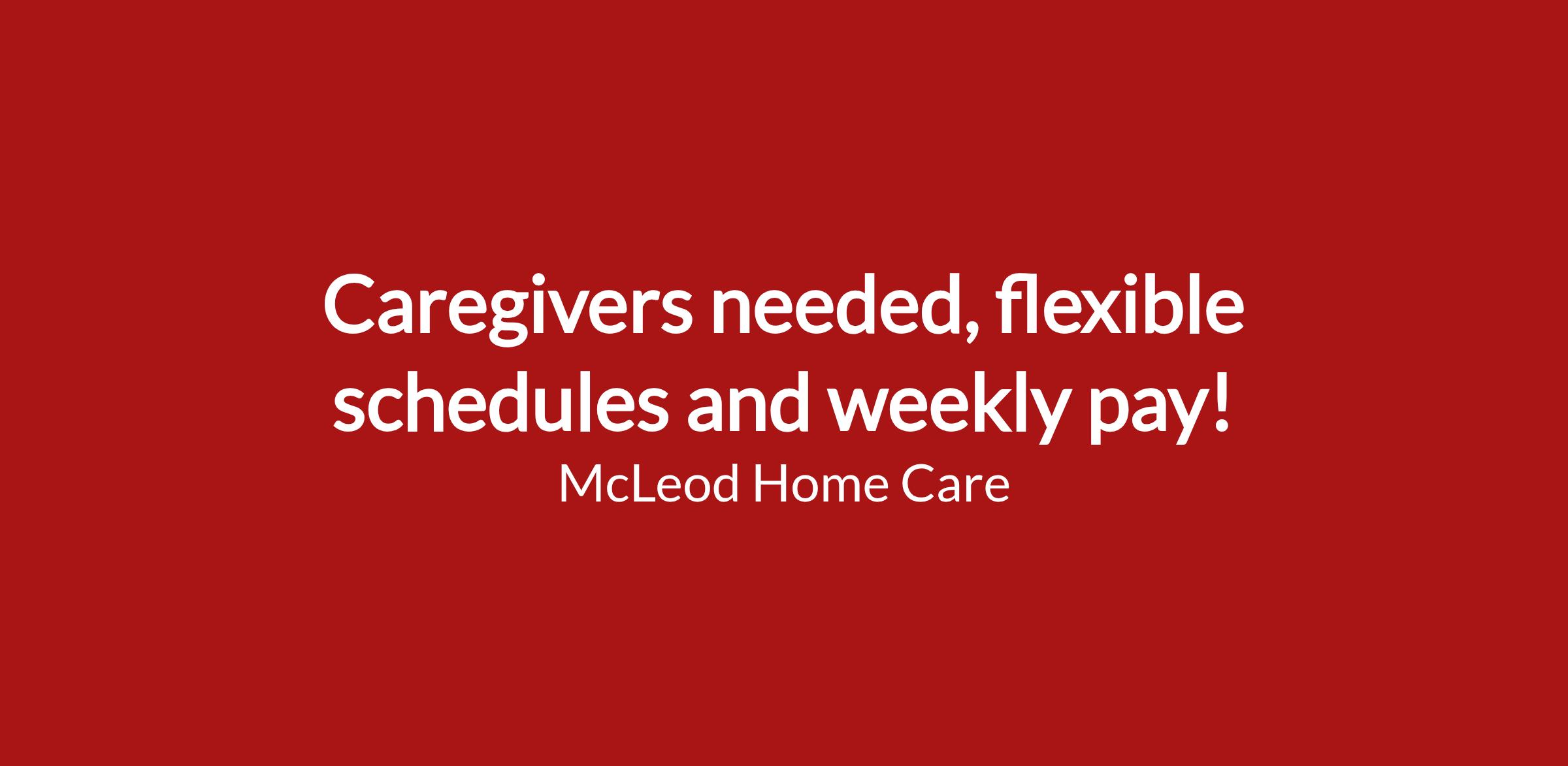 McLeod Home Care is a non-medical home care agency looking for experienced, caring, and compassionate Care Professionals! We have great appreciation for those who put their heart and soul into this work. Apply now to see why 60% of our Care Professionals are referred by our current staff of Care Professionals!