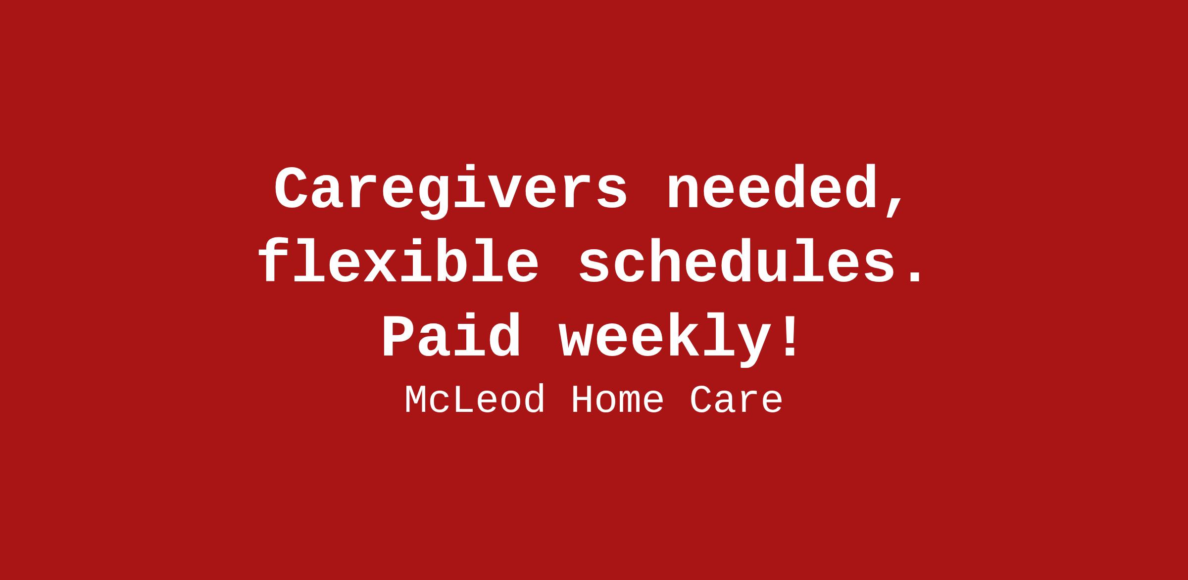 McLeod Home Care is a non-medical home care agency looking for experienced, caring, and compassionate Care Professionals! We have great appreciation for those who put their heart and soul into this work. Apply now to see why 60% of our Care Professionals are referred by our current staff of Care Professionals!
