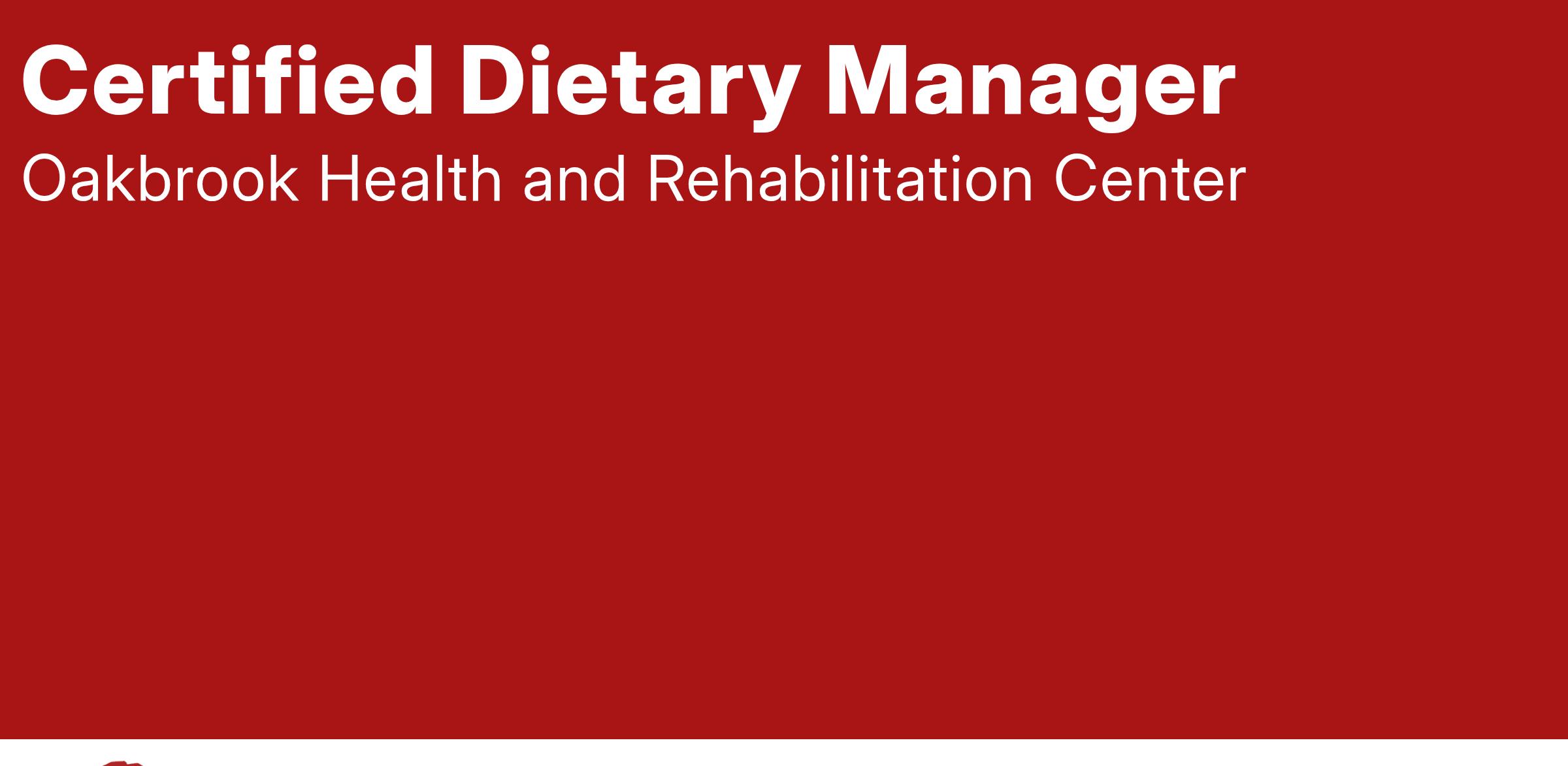 Culinary Arts is a calling, a passion. Our residents and patients look forward to their meal times and have high expectations of our nutrition staff. Utilize your background in management, culinary arts and customer service to inspire our team to continue a quality dining experience.