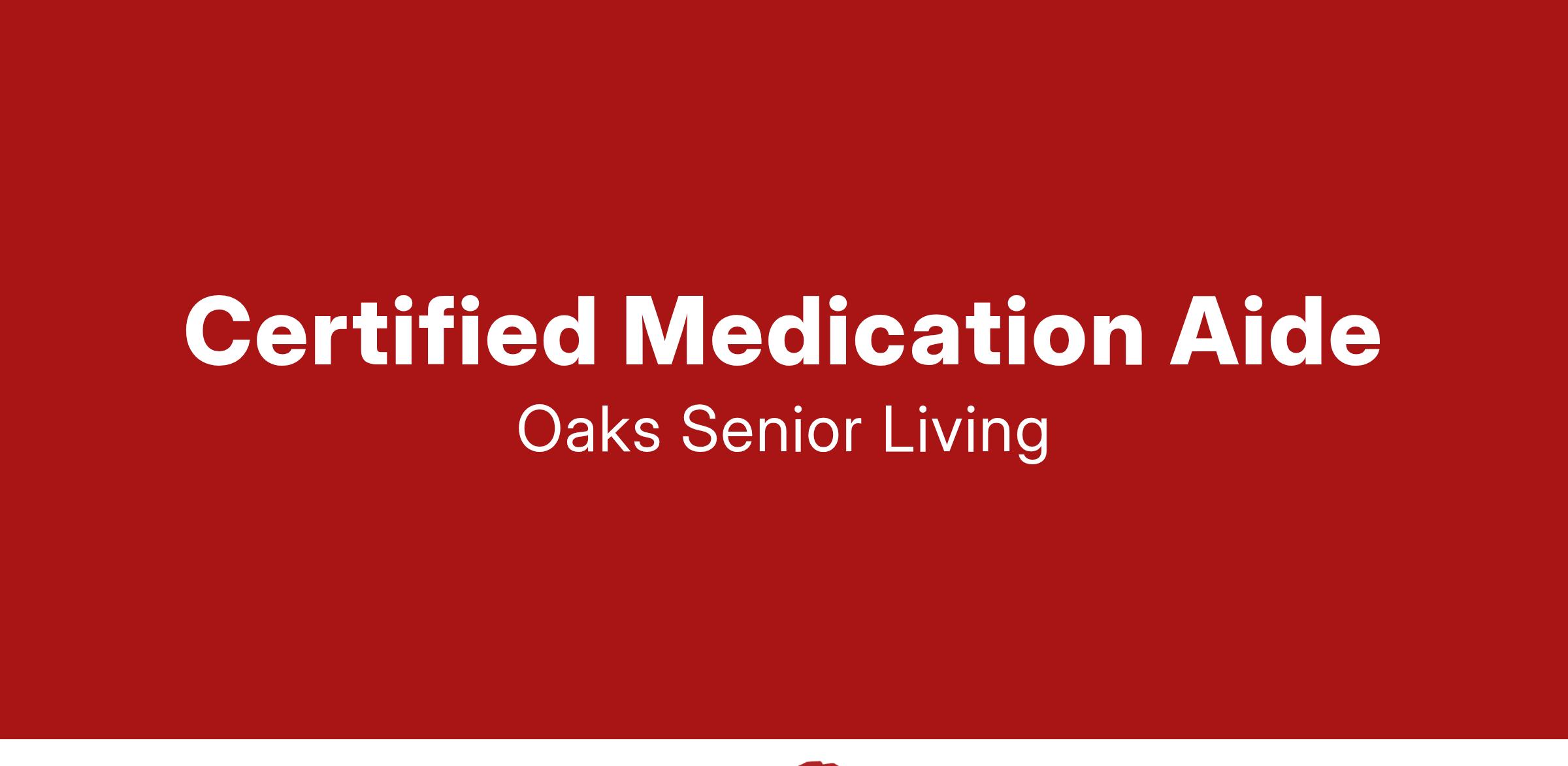 Oaks Senior Living is currently recruiting kind hearted, experienced Certified Medication Aides who have a passion for working with seniors. Our culture centers around a Person Centered Lifestyle with great core values and a dedication to enrich the lives of those we serve . Oaks Senior Living inspires team members to excel, rewards for excellence and creates a work environment where all are trusted and empowered with a sense of ownership. Extremely rewarding opportunity with growth potential!