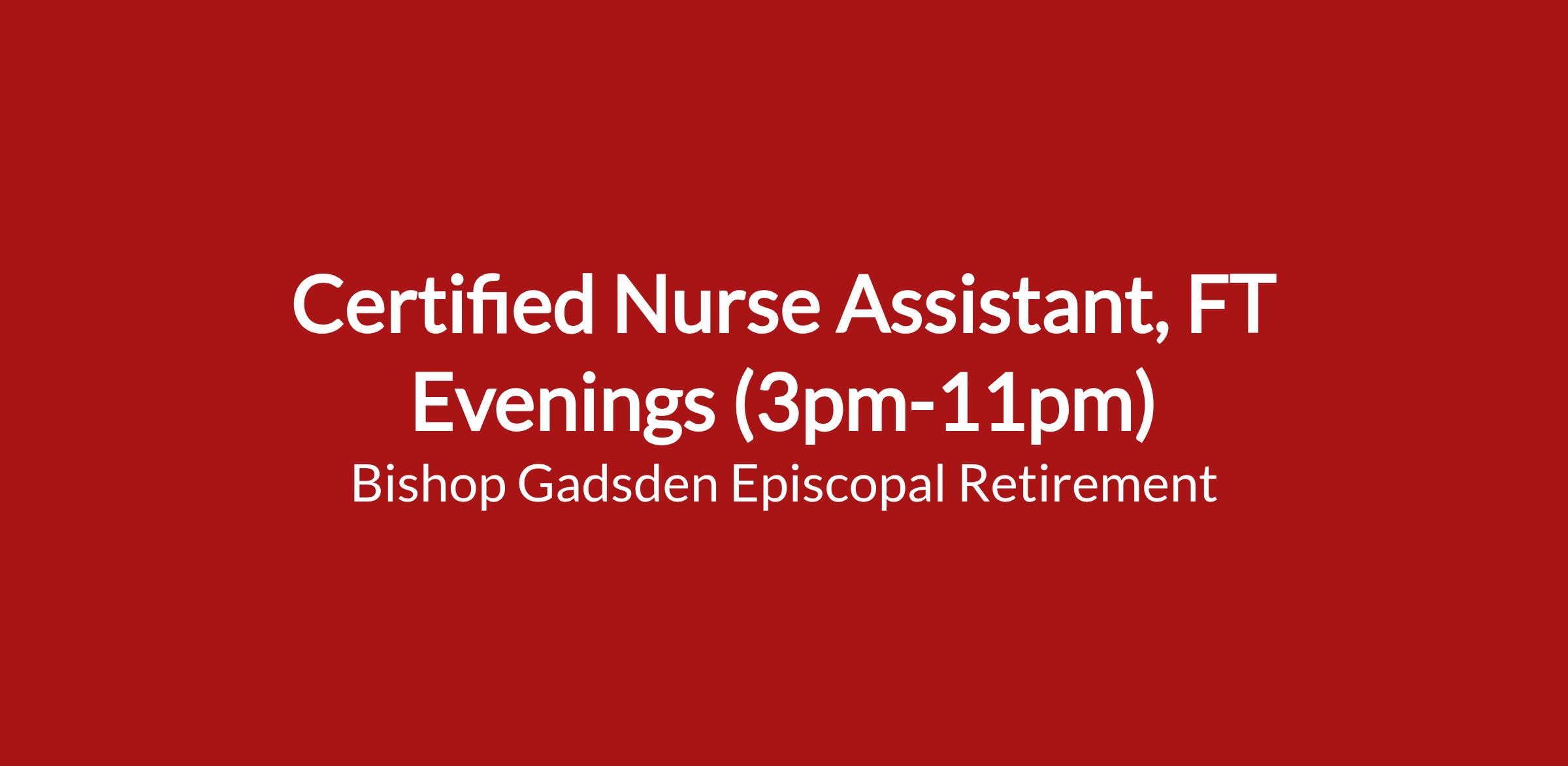 Our Certified Nursing Assistants at Bishop Gadsden provide quality care by assisting residents with personal, nutritional, and restorative care. The successful candidate will be a resident advocate that is friendly, energetic, organized and has compassion for and the desire to work with the elderly.