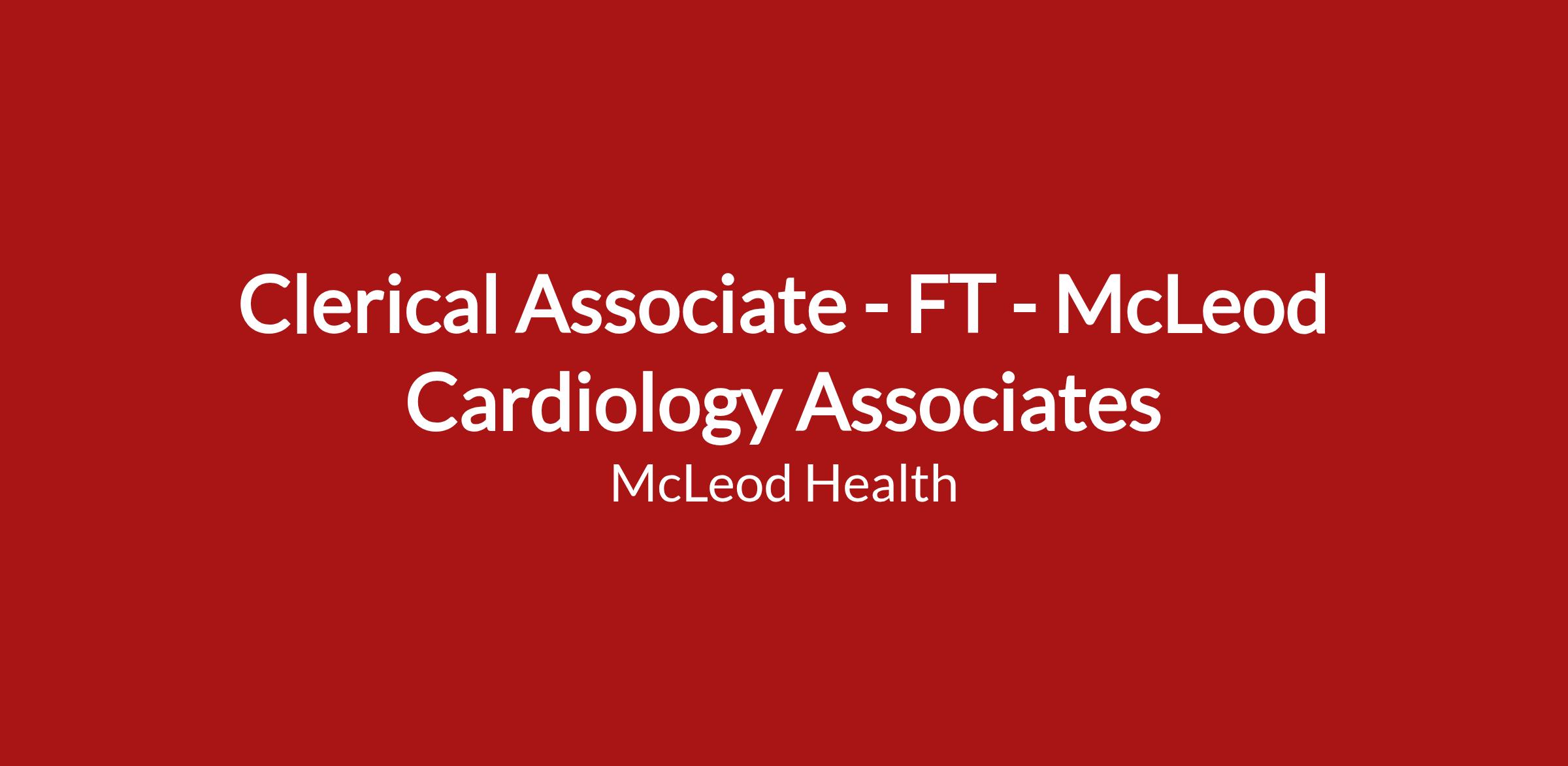 Clerical Associate β FT β McLeod Cardiology AssociatesΒ