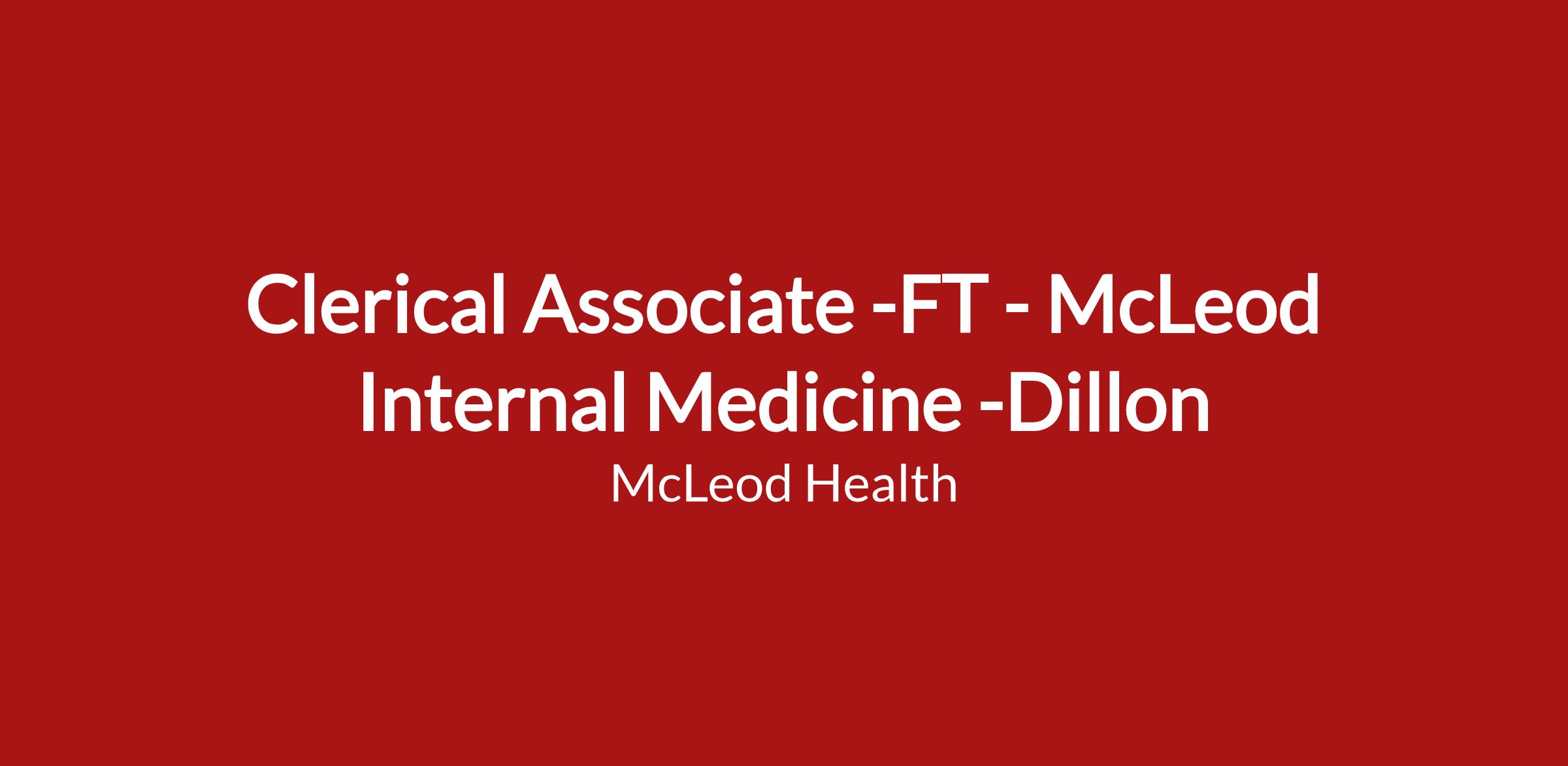 Clerical Associate - McLeod Internal Medicine - Dillon SCÂ