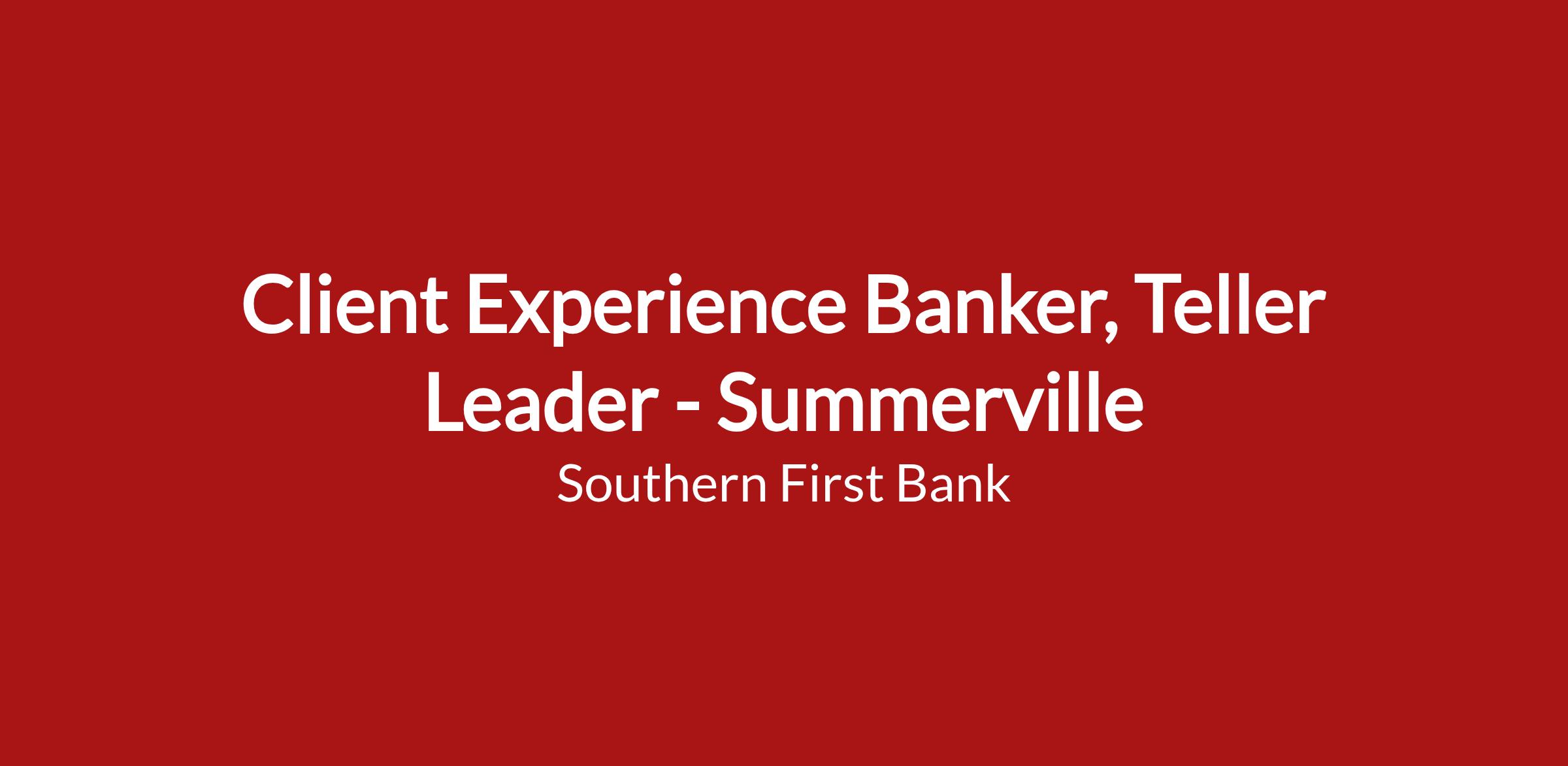 - Ability to effectively communicate while displaying the professional demeanor which is identified with Southern First Bank.