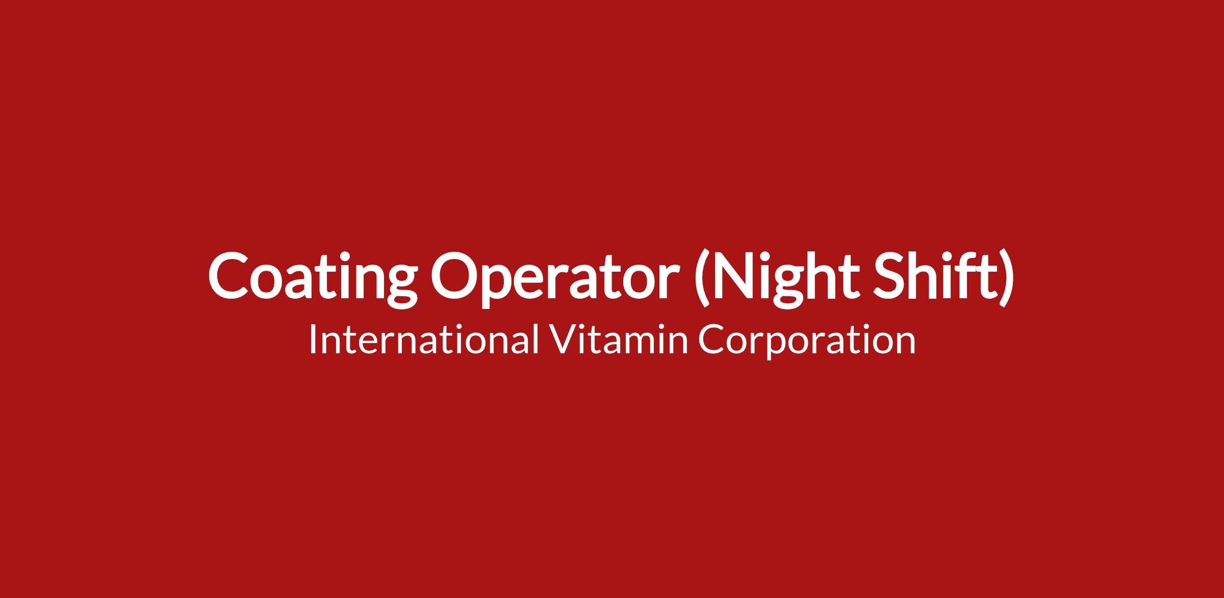 IVC is proud to be an Equal Opportunity Employer M/F/D/V - EOE. International Vitamin Corporation (IVC) is a leading global manufacturer of vitamins and nutritional supplements with more than half a century of private label and contract manufacturing experience, an impeccable quality and regulatory compliance record, and with new resources focused on enriching the health and lives of others. This position ensures efficiency of equipment with tablet compression by setting up, cleaning, operating and maintaining equipment with cGMPs and SOPs. Candidate will participate in developing and monitoring the process to improve uptime and efficiencies.