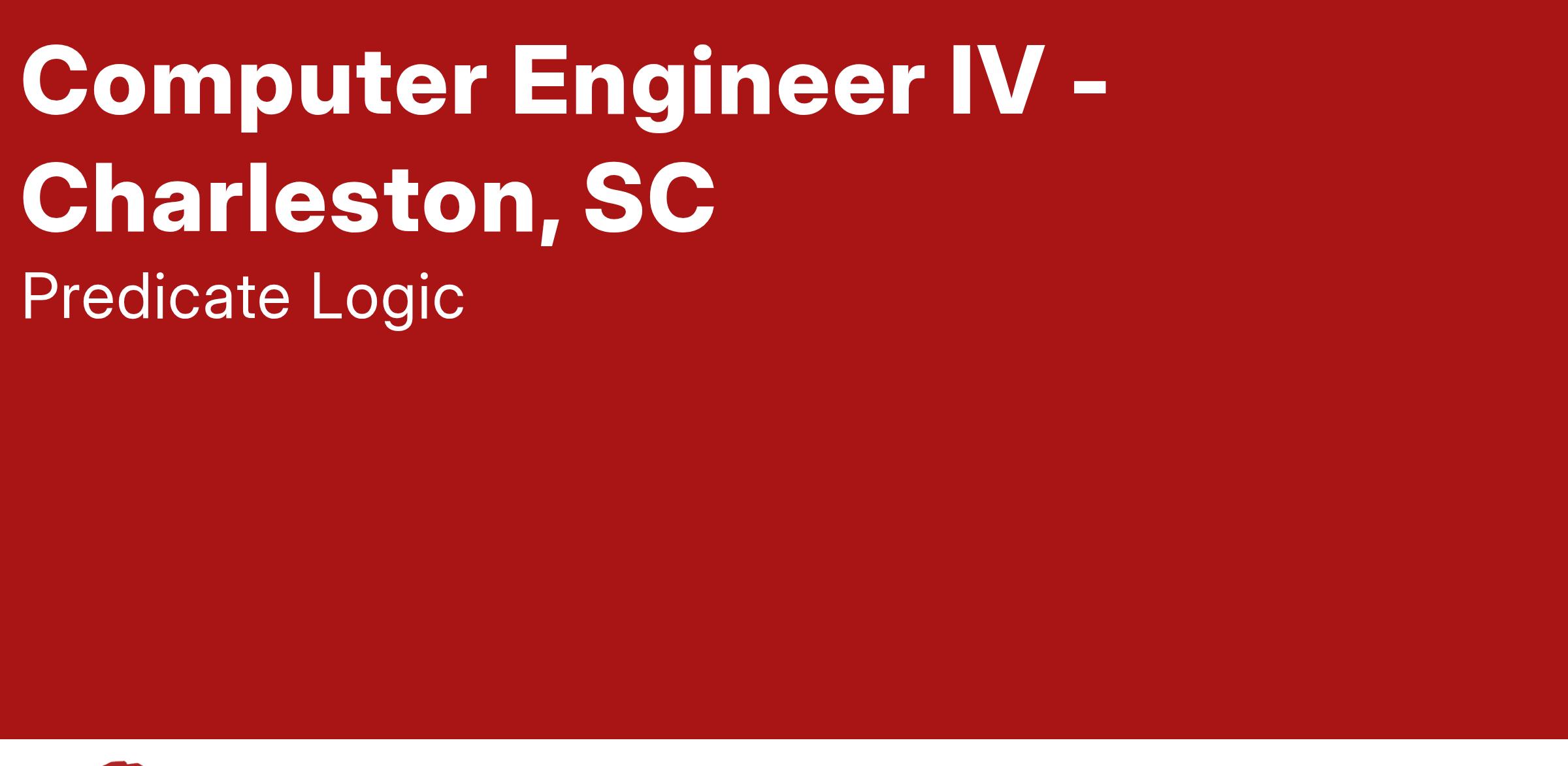 Predicate Logic is looking for a motivated Computer Engineer IV to join our team in Charleston, SC.