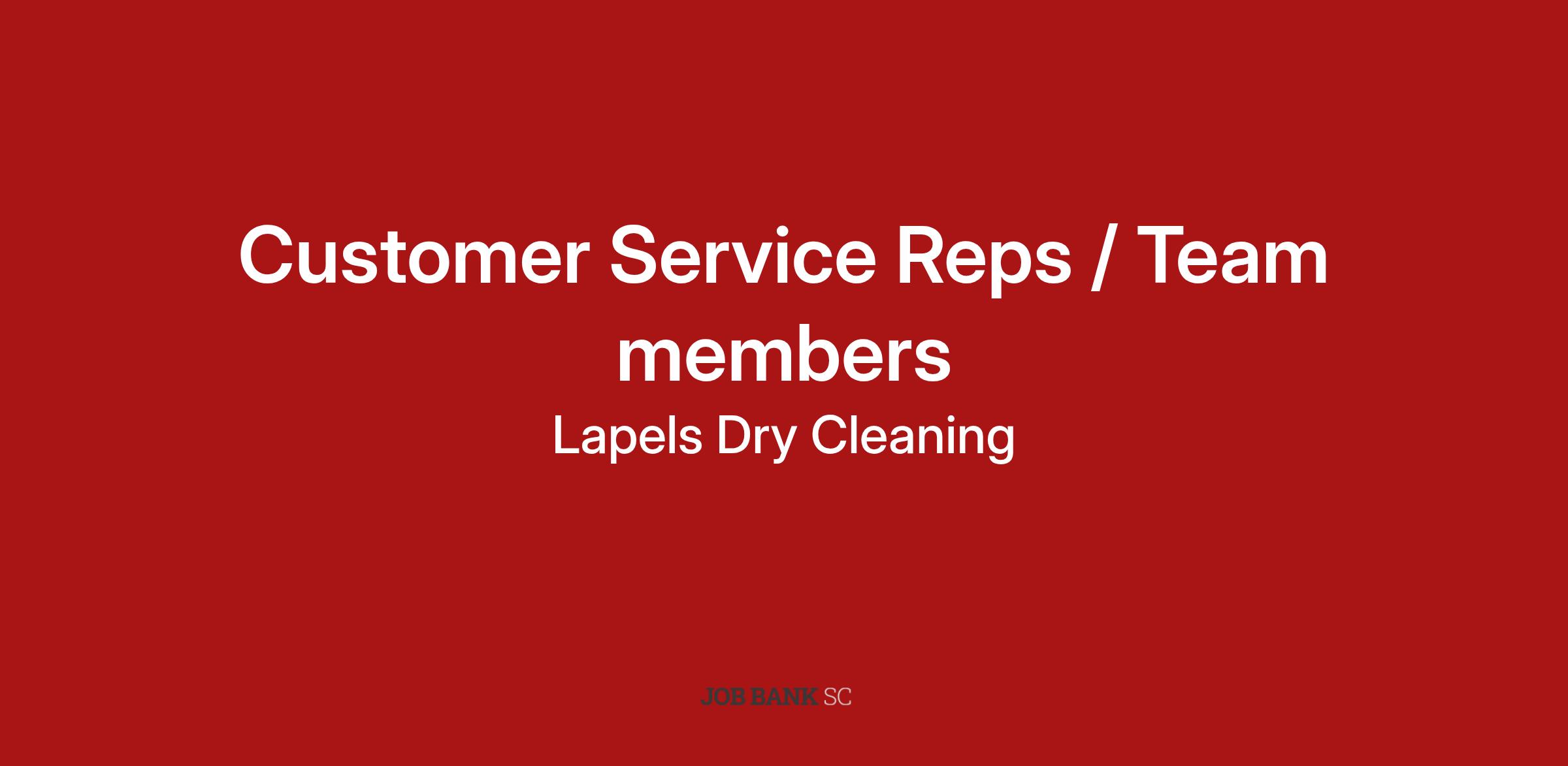 Lapels Dry Cleaning is looking for energetic, outgoing Customer Service Reps / Team members!