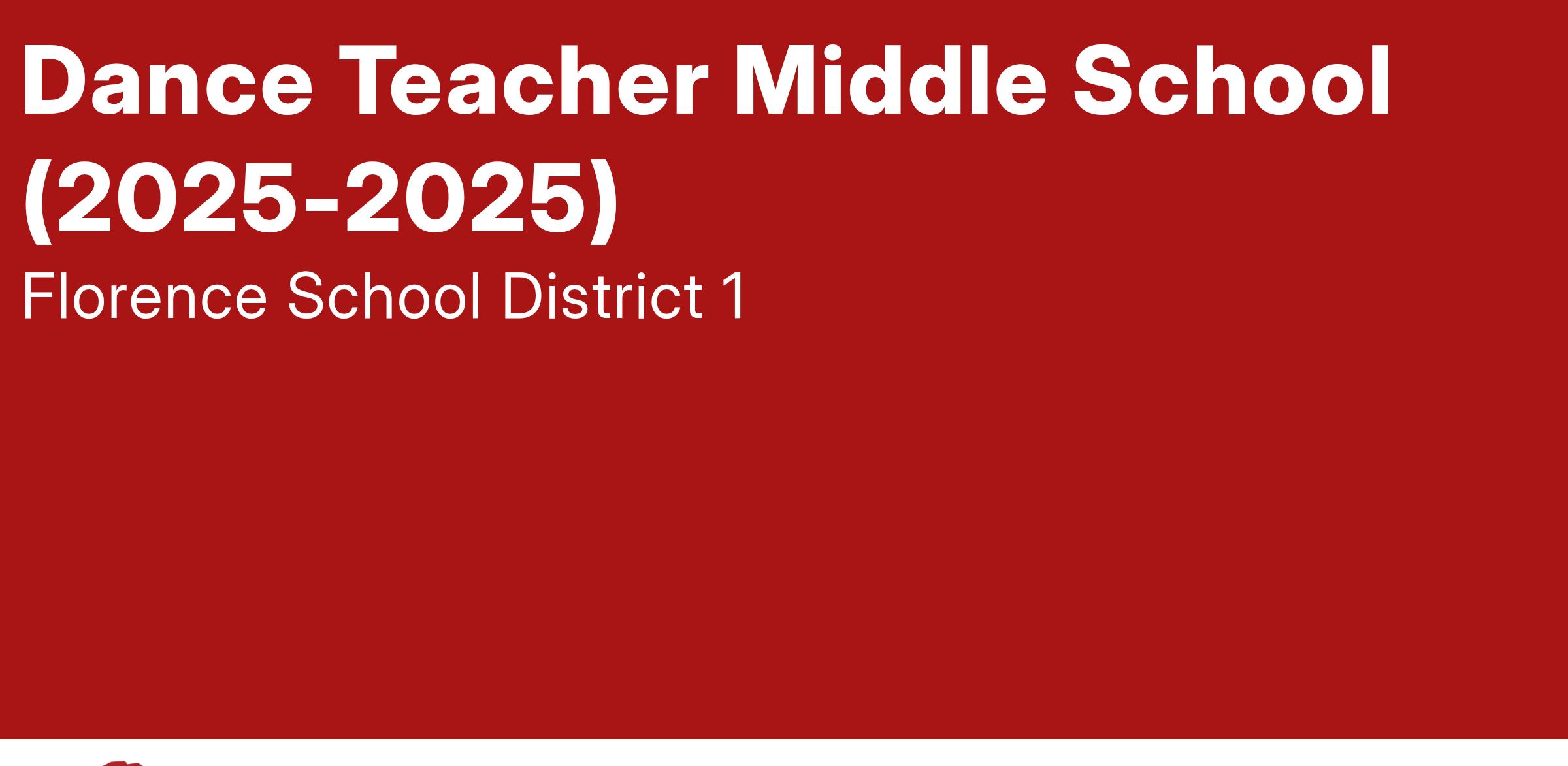 Job Knowledge: Is knowledgeable in the methods, policies and procedures of the Florence 1 Schools pertaining to specific duties of the Teacher. Is knowledgeable in the laws, ordinances, standards and regulations pertaining to the specific duties and responsibilities of the position. Has knowledge of the organization of the department and of related departments and agencies. Has the ability to comprehend, interpret and apply regulations, procedures and related information. Has thorough knowledge of the subject area(s) assigned to teach; has skill in the interpretation of subject matter to the intellectual level of students taught. Is able to create and present innovative, effective, developmentally appropriate course and lesson plans. Has knowledge of the characteristics of the age group assigned. Is able to establish and maintain positive relationships and work effectively with adults and students. Is able to supervise, guide and support students with patience and kindness. Is able to motivate students to participate in educational and extracurricular activities and to want to learn.  Is able to recognize signs of learning, physical, mental and social disabilities and take appropriate action. Is able to provide assistance, support and/or skills development opportunities to parents as required. Is able to perform job tasks professionally in an environment where discrimination and other public issues are constant concerns. Has knowledge of and is able to use modern office practices and equipment, including computers. Has knowledge of proper English usage, vocabulary, punctuation and spelling; has the mathematical ability to handle required calculations. Is skilled in applying a responsible attention to detail as necessary in preparing records, reports and correspondence. Is able to read and interpret various materials pertaining to the responsibilities of the job. Is able to take the initiative to complete the duties of the position without the need of direct supervision. Is able to use independent judgment in performing tasks. Has the ability to plan, organize and prioritize daily assignments and work activities. Is able to offer assistance to fellow employees as necessary. Knows how to maintain effective relationships with co-workers, personnel of other departments, parents, students and members of the public through contact and cooperation. Has knowledge of the occupational hazards and safety precautions of the industry. Knows how to react calmly and quickly in emergency situations. Has the ability to learn and utilize new skills and information to improve job performance and efficiency. Maintains high standards of accuracy in exercising duties and responsibilities. Exercises immediate remedial action to correct any quality deficiencies that occur in areas of responsibility. Maintains high quality communication and interaction with internal and external entities with whom the position interacts. Performs described Essential Functions and related assignments efficiently and effectively in order to produce a quantity of work which consistently meets established standards and expectations. Assumes responsibility for completing assigned work.  Completes assigned work within deadlines in accordance with directives, policy, standards and prescribed procedures. Maintains accountability for assigned responsibilities in the technical, human and conceptual areas. Attends and remains at work regularly and adheres to policies and procedures regarding absenteeism and tardiness. Provides adequate notice to higher management with respect to vacation time and leave requests. Initiative and Enthusiasm: Maintains an enthusiastic, self-reliant and self-starting approach to meet job responsibilities and accountabilities. Strives to anticipate work to be accomplished, and initiates proper and acceptable action for the completion of work with a minimum of supervision and instruction.  Judgment: Exercises analytical judgment in areas of responsibility. Identifies issues or situations as they occur and specifies decision objectives. Identifies or assists in identifying alternative solutions to issues or situations. Implements decisions in accordance with prescribed and effective policies and procedures and with a minimum of errors. Seeks expert or experienced advice where appropriate and researches issues, situations and alternatives before exercising judgment. Monitors the activities/behavior of the student body as scheduled to ensure student safety and well-being.  Cooperation: Accepts supervisory instruction and direction and strives to meet the goals and objectives of the same. Questions such as instruction and direction when clarification of results or consequences are justified, i.e., poor communications, variance with established policies or procedures, etc. Offers suggestions and recommendations to encourage and improve cooperation intra- and inter-departmentally. Shares knowledge with managers, supervisors and co-workers for mutual benefit. Contributes to maintaining high morale among all employees. Develops and maintains cooperative and courteous relationships inter- and intra-departmentally, and with external entities with whom the position interacts. Tactfully and effectively handles requests, suggestions and complaints in order to establish and maintain good will. Emphasizes the importance of maintaining a positive image.  Coordination of Work: Plans and organizes daily work routine. Establishes priorities for the completion of work in accordance with sound time-management methodology. Avoids duplication of effort. Estimates expected time of completion of work elements and establishes a personal schedule accordingly. Attends required meetings, planning sessions and discussions on time. Implements work activity in accordance with priorities and estimated schedules. DISCLAIMER: This job description is not an employment agreement or contract. Ma