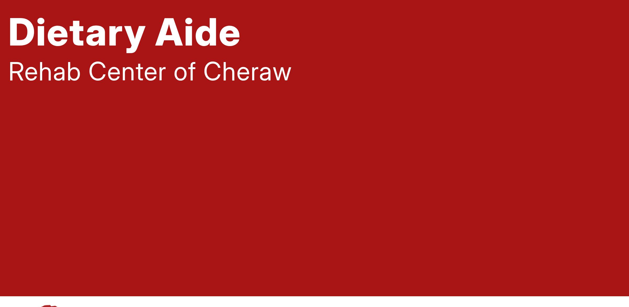 Do you love working in the kitchen? Do you find joy in preparing and serving fresh meals to others? Would knowing that the hard work you do, day in and day out, truly makes a difference in the lives of others? The Dietary Aide position truly touches lives every single day β our patients and long term residents look forward to their meal times and count on our staff to make it an enjoyable experience β be part of a team that makes a difference every day.