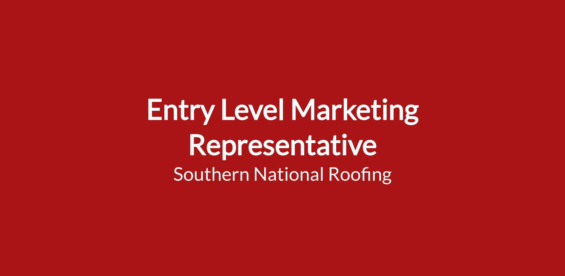 Southern National Roofing is a $20M+ residential roofing company hiring full-time Entry Level Marketing Representatives for our local office.