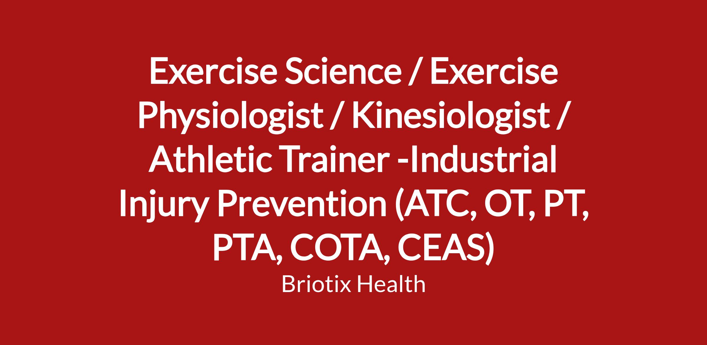 Key Words:Β industrial medicine, ergonomics, body mechanics, occupational health, healthcare, industrial sports medicine, sports medicine, athletic trainer, AT, ATC, occupational therapist, OT, physical therapist, PT, DPT, kinesiologist, exercise physiologist, physical therapy assistant, PTA, safety, industrial ergonomics, office ergonomics, health & wellness, injury prevention, behavioral ergonomics, education,Β 1:1, autonomy, independent, clinical, non-clinical, education, presentations, public speaking, coaching, biomechanics, safety, human movement