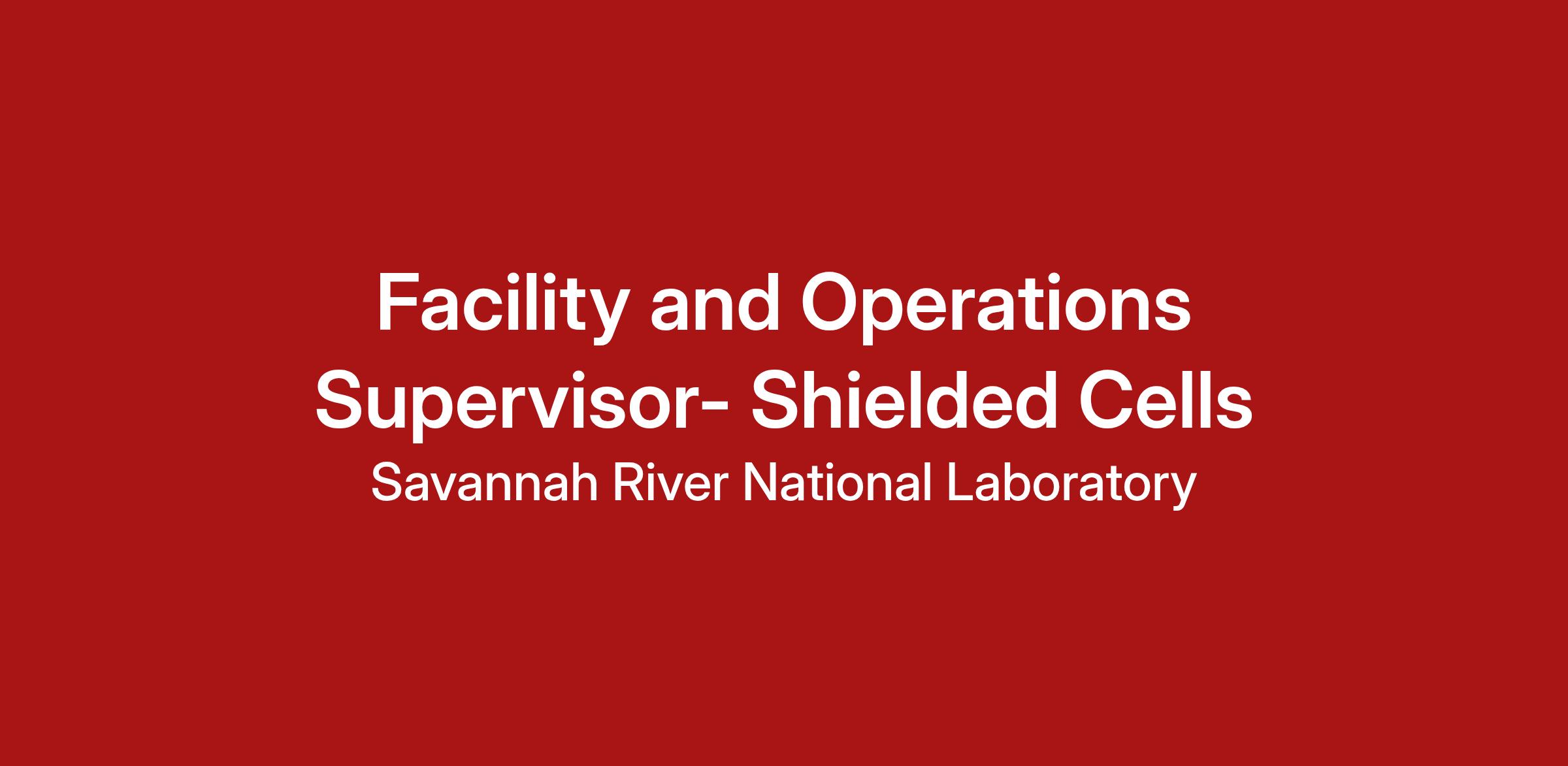 Savannah River National Laboratory is seeking an experienced professional to join our Operations and Facilities organization. The Operations and Facilities Supervisor β Shielded Cells provides daily support and guidance to the Shielded Cells. Candidates should be familiar with DOE and SRNL internal procedures and policies for conduct of operations, and the planning and execution of maintenance work activities in an operating National Laboratory that supports Nuclear, Industrial, and Commercial missions.