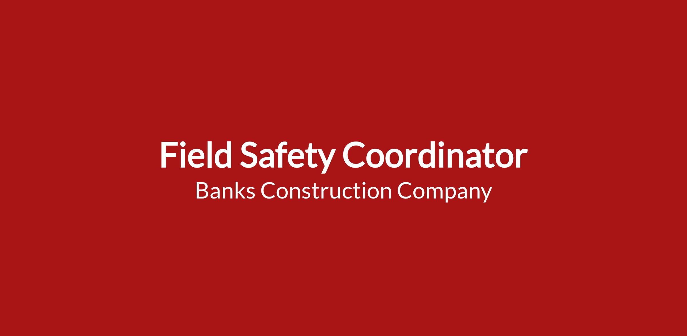 Banks Construction Company is seeking a Field Safety Coordinator to join our Safety & Development Group. The ideal candidate will have experience in bridge, grading, and heavy highway construction projects. As a Field Safety Coordinator, you will be responsible for ensuring the safety of all personnel on the job site and ensuring compliance with all safety regulations.