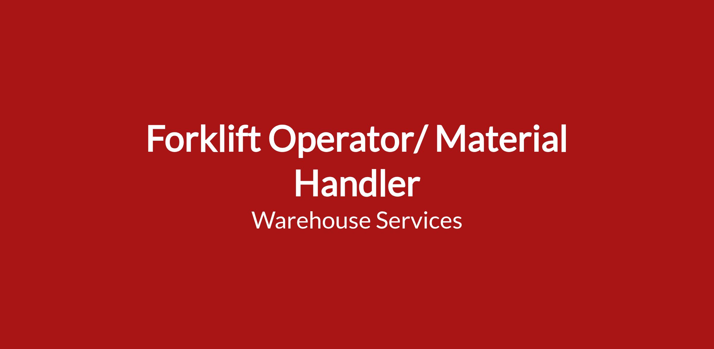 Monday- Friday 8-4:30 Experienced Forklift Operator Needed