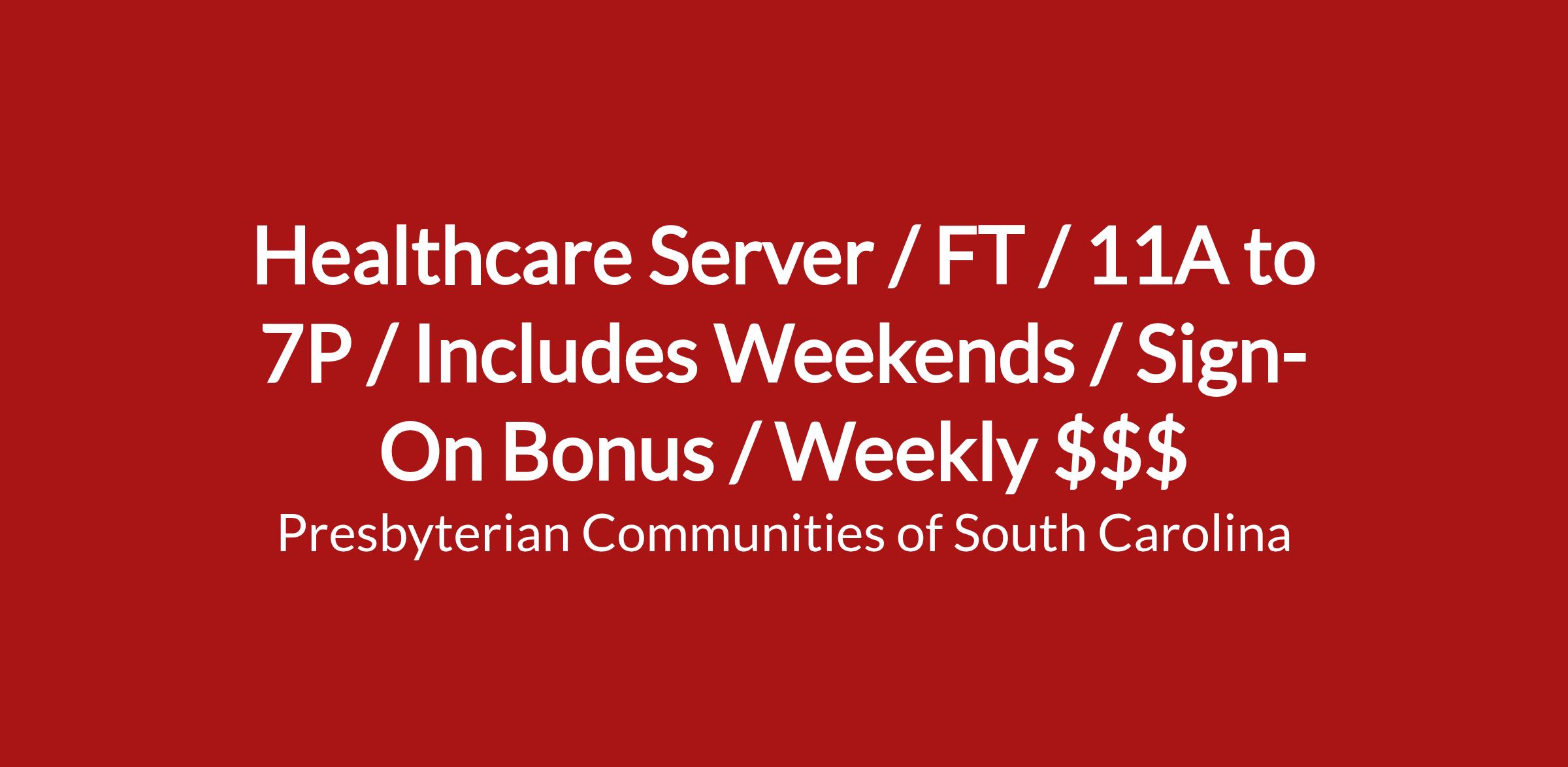 Join Our Team as a Healthcare Server Easley, SC