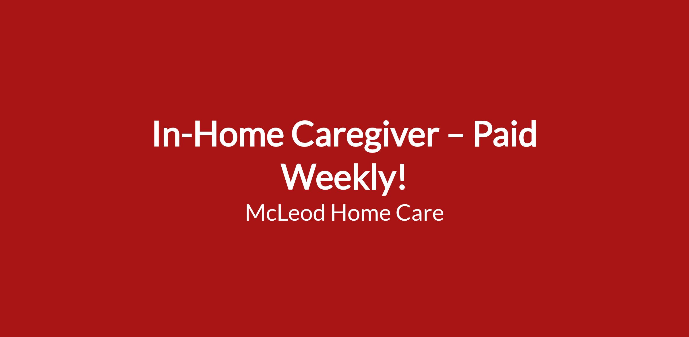 McLeod Home Care is a non-medical home care agency looking for experienced, caring, and compassionate Care Professionals! We have great appreciation for those who put their heart and soul into this work. Apply now to see why 60% of our Care Professionals are referred by our current staff of Care Professionals!