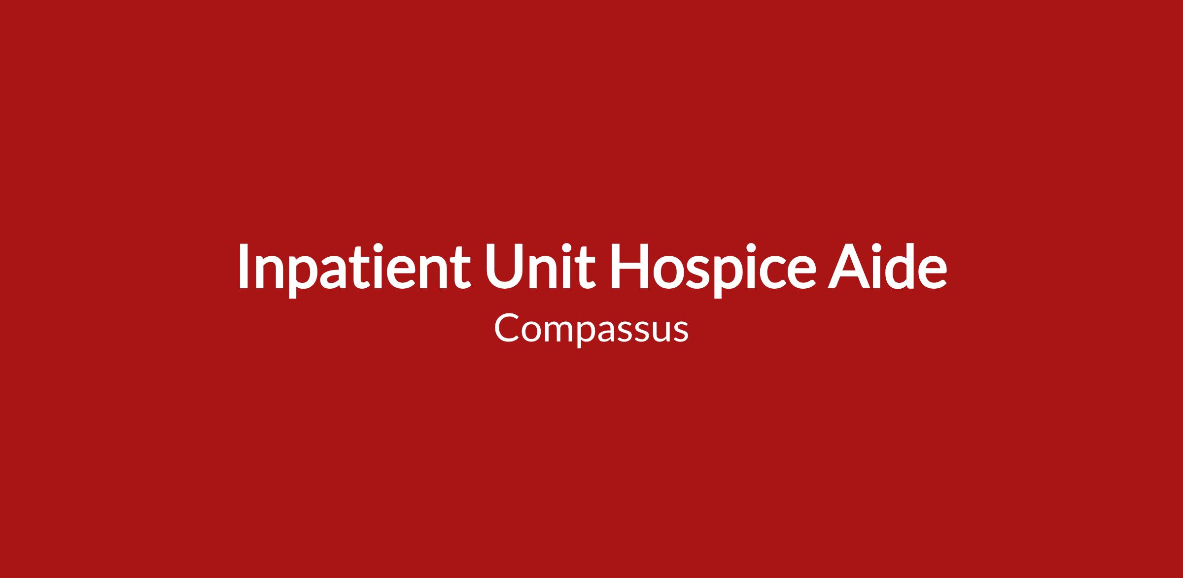 The Inpatient Unit Hospice Aide is responsible for modeling the Compassus values of Compassion, Integrity, Excellence, Teamwork, and Innovation and for promoting the Compassus philosophy, using the 6 Pillars of Success as the foundation. S/he is responsible for upholding the Code of Ethical Conduct and for promoting positive working relationships within the company, among all departments, and all external stakeholders. The Inpatient Unit Hospice Aide insures that the center is maintained in a clean and sanitary condition at all times to provide for the care and welfare of the customers in a healthful environment. In addition, s/he ensures that good housekeeping services are performed in every department of the center and are planned in cooperation with the department head. This role may also fill in as needed as a Hospice Aide-House Mother.