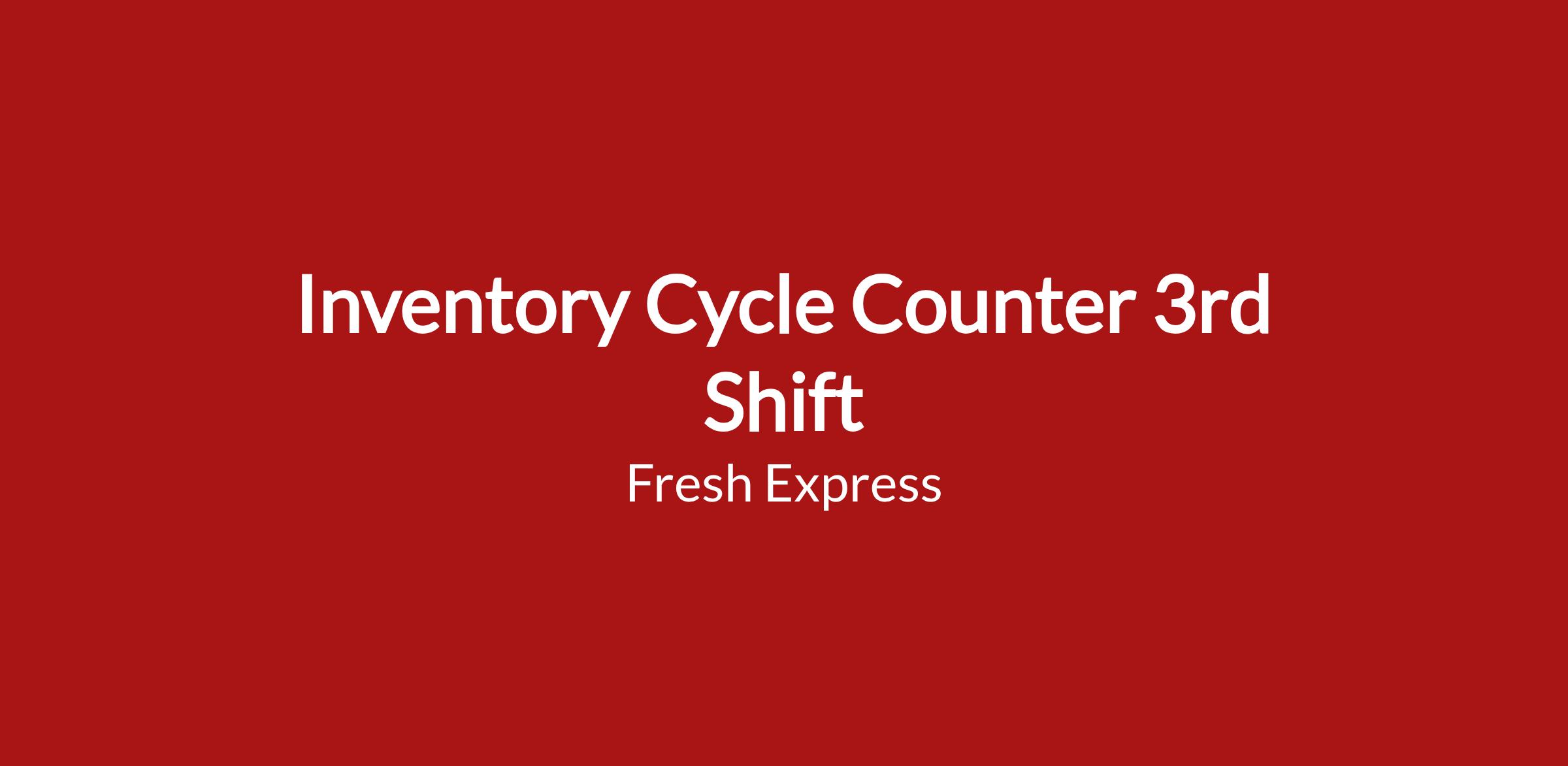 The Inventory Cycle Counter is responsible for maintaining accurate inventory data in PRMS and providing support as needed in the Inventory department. This requires daily cycle counting and inventory maintenance, packaging, film, condiment, trailers and Finished Goods inventories.