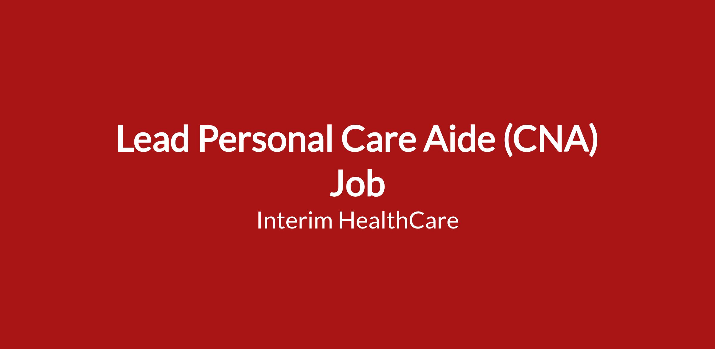 Are you a compassionate, experienced caregiver ready to take the next step in your career? Interim HealthCare is looking for a Lead Certified Nursing Assistant (CNA) to join our Personal Care Department. This is an exciting opportunity to combine hands-on care with leadership and mentoring responsibilities, ensuring our clients receive the highest quality support in their homes or care facilities.