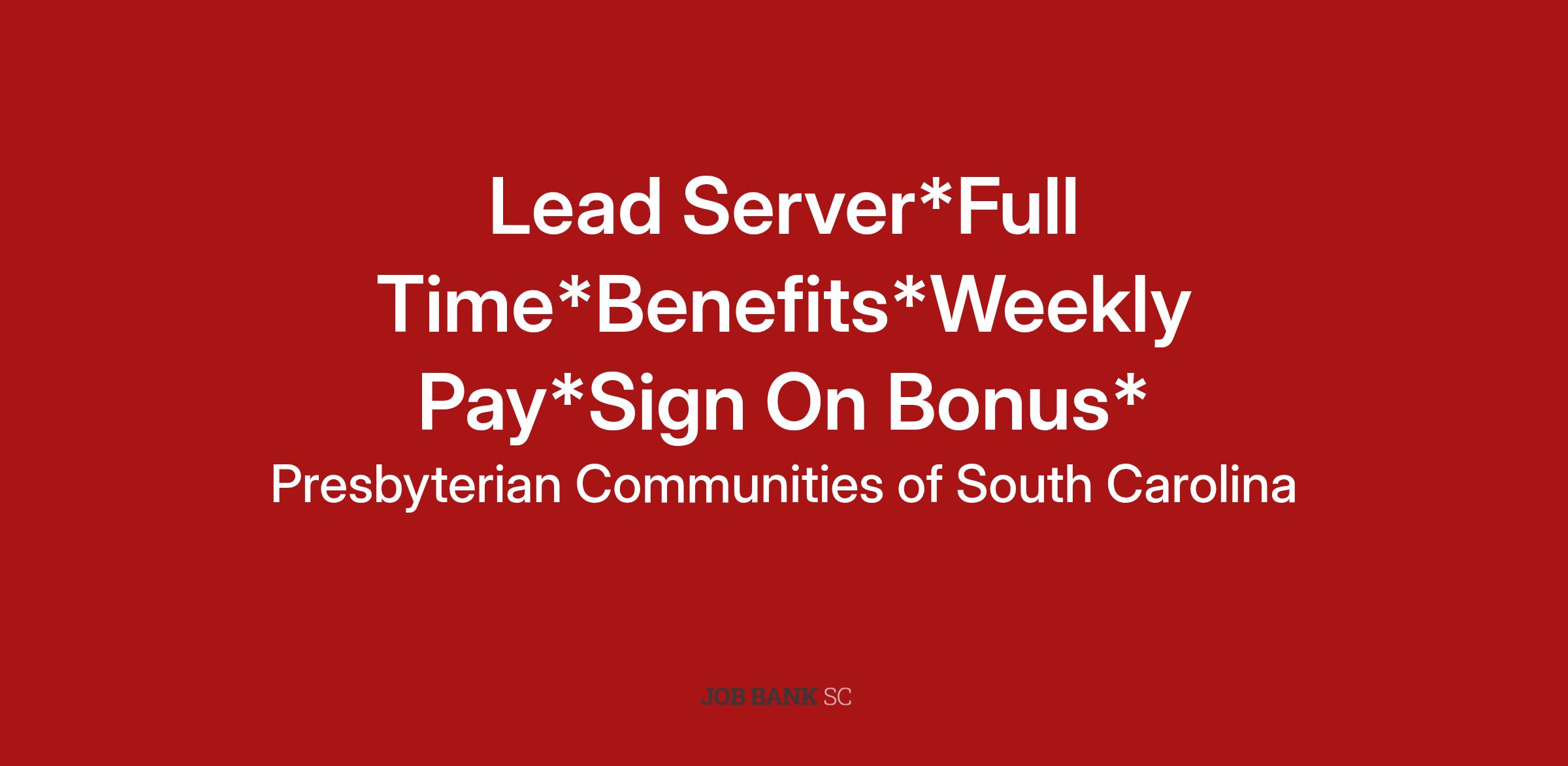 The Columbia Presbyterian Community is seeking a professional and compassionate Lead Server to join our team to help create warm, homelike experience for all residents.Β