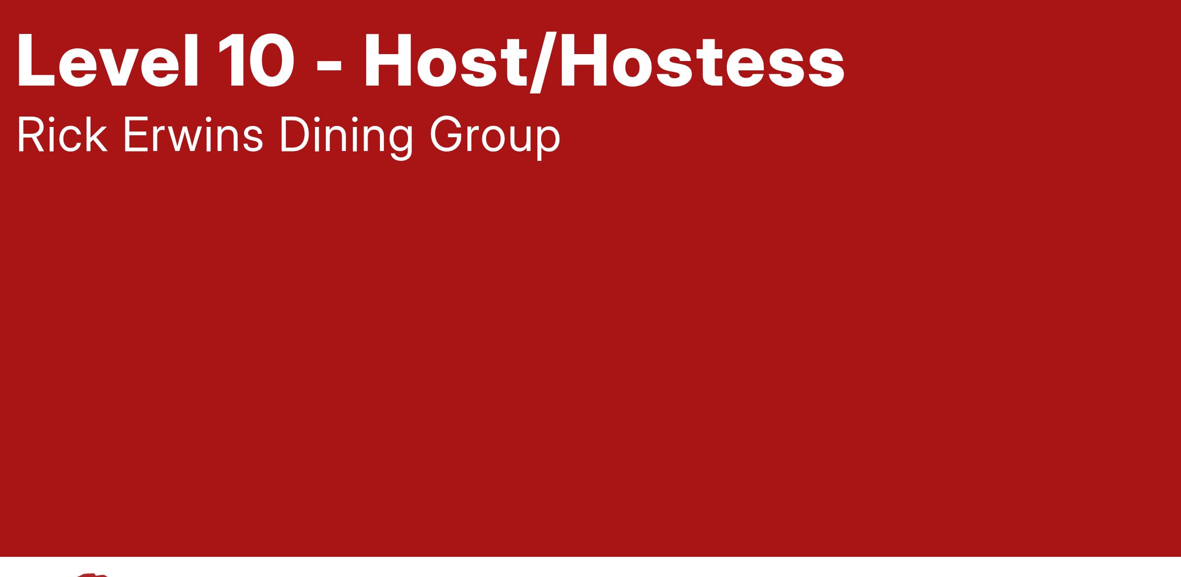 Welcome and warmly greet guests on arrival. Answer the telephone, take reservations and manage the efficient and timely seating of our guests. Display hospitality and professionalism to our guests at all times, take pride in representing the Rick Erwin Dining Group.