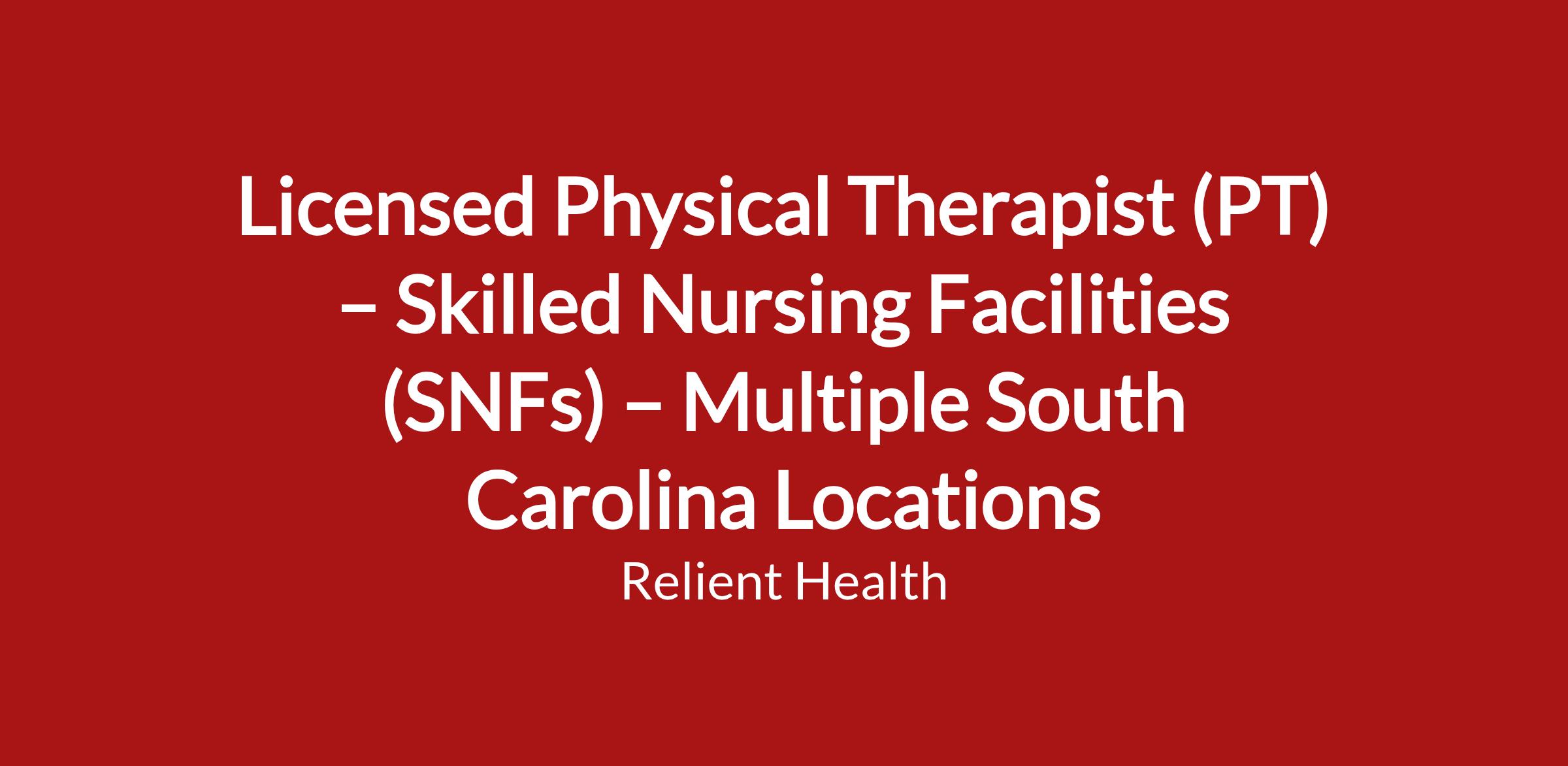 Licensed Physical Therapist (PT) – Skilled Nursing Facilities (SNFs) – Multiple South Carolina Locations