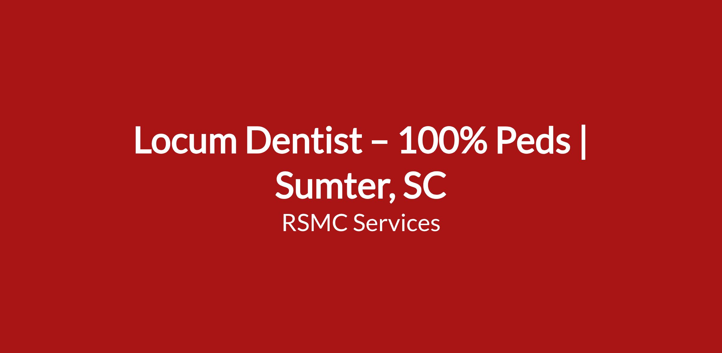 On behalf of our client, R.S.M.C. ServicesΒ Weβre looking for a consistent locum dentist for Mondays in Sumter, SC.