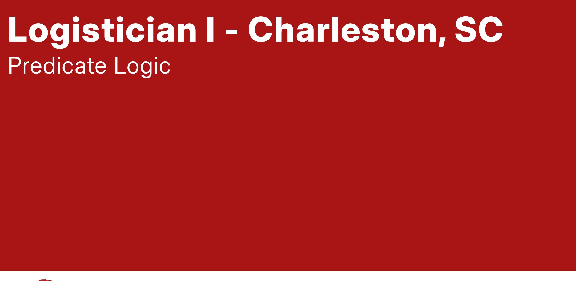 Predicate Logic is looking for a motivated Logistician I to join our team in Charleston, SC