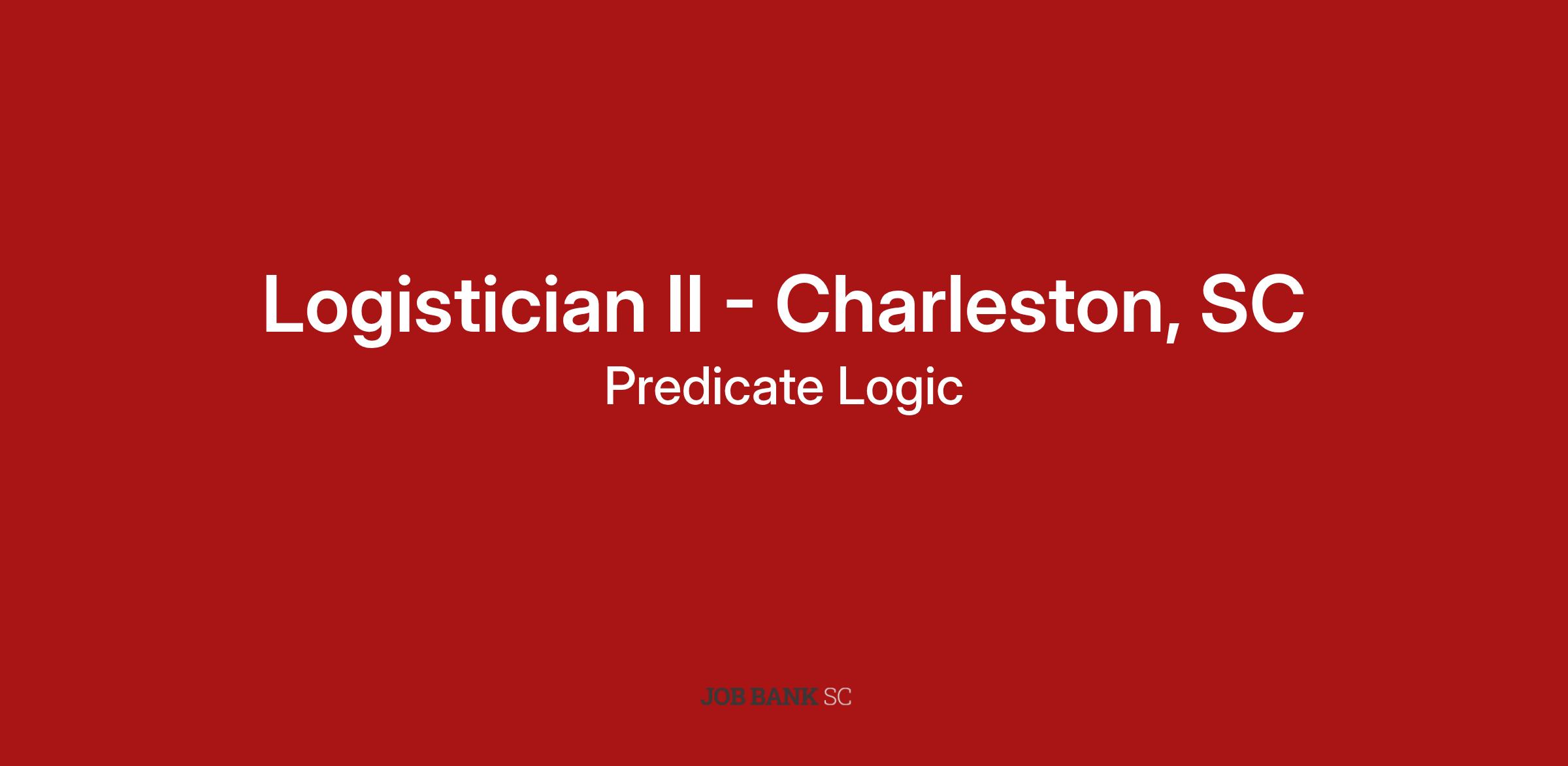 Predicate Logic is looking for a motivated Logistician II to join our team in Charleston, SC
