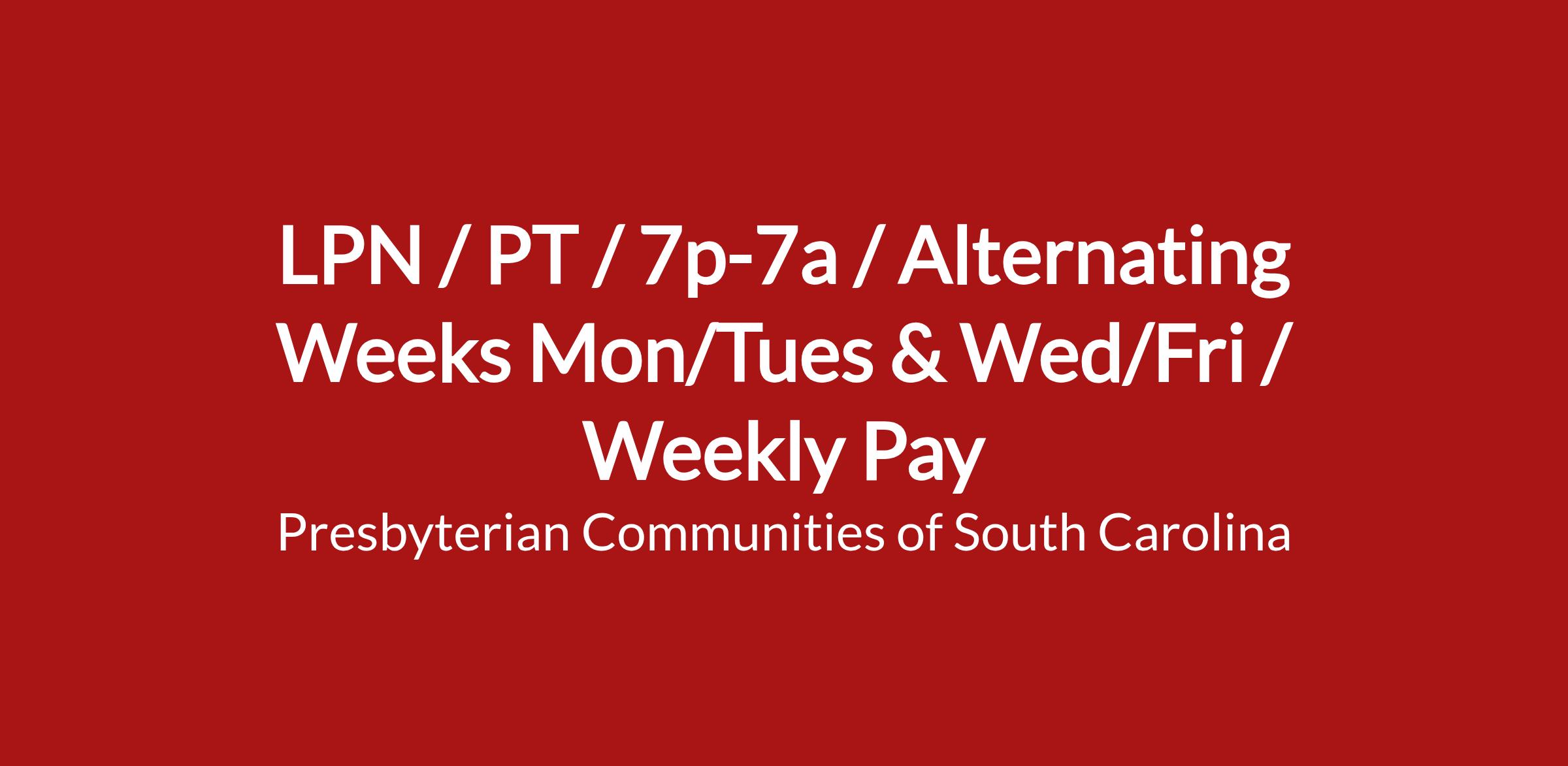 Part Time (schedule would be Mon/Tues 1st week; Wed/Thurs the following week; repeat)