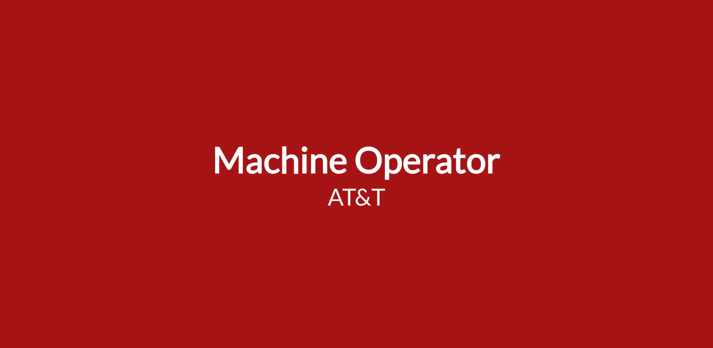 Our Machine Operators earn between $442 β $1,094 weekly. With our amazing salary opportunities, our average starting salary begins at $51,064.00 per year. Not to mention allΒ the other amazing rewards that working at AT&T offers. From health insurance to tuition reimbursement and paid time off to discounts on products and services just to name a few. There is a lot to be excited about around here. Individual starting salary within this range may depend on geography, experience, expertise, and education/training.