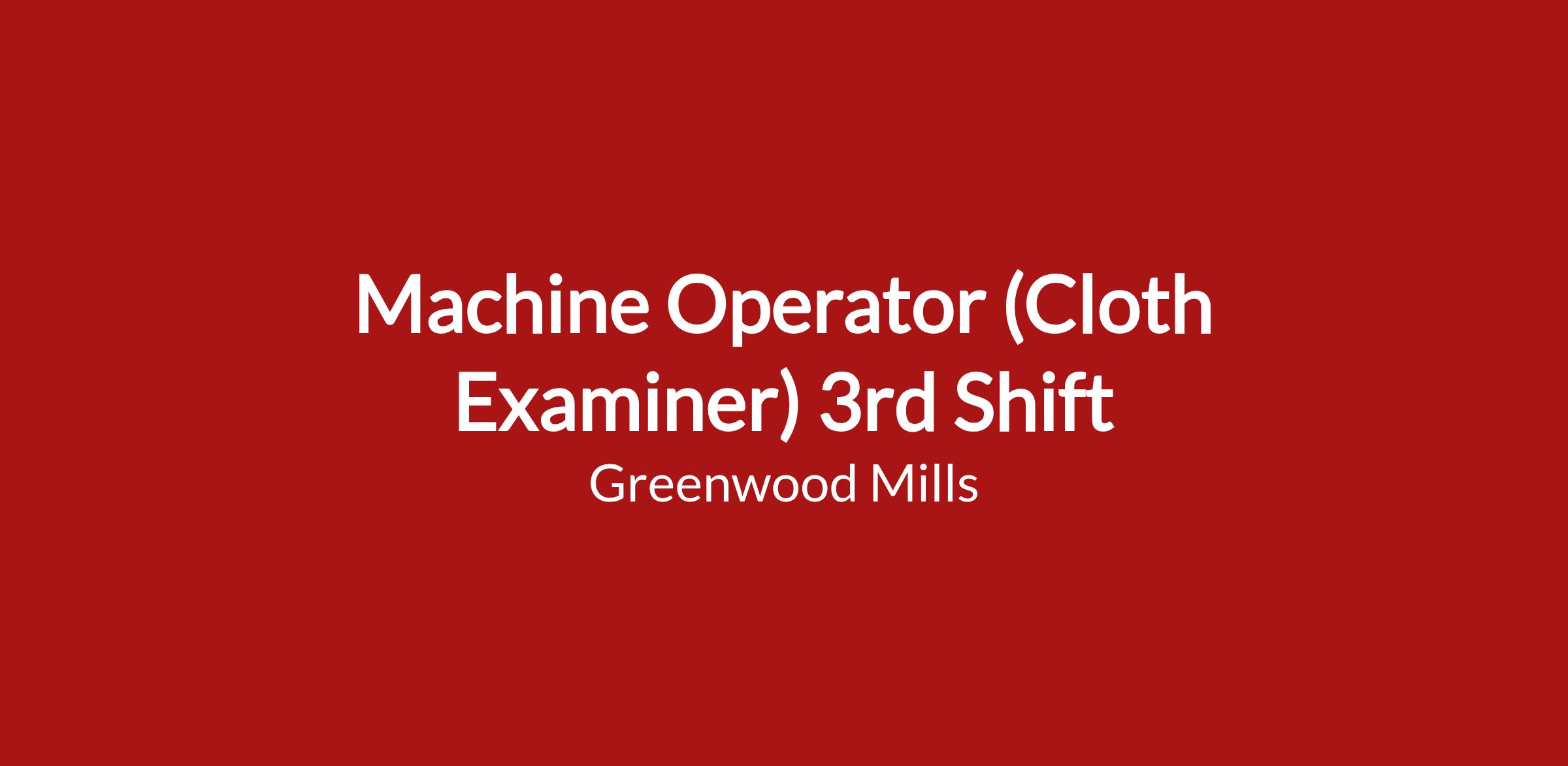 The cloth inspector/examiner responsibility is to check rolls of cloth and to catch defects before the product is shipped out. Any defects that leak through can go to our customers and cost the company money! That's why your the last line of defense. You have your own station that you need maintain and keep clean. You also must be able to communicate and work well with others.