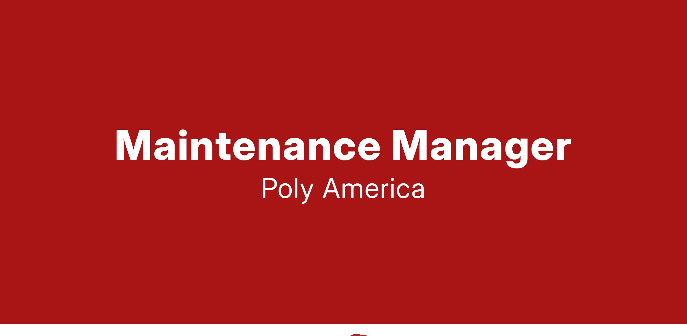 Carolina Poly, located in Westminster, SC, is currently seeking a Maintenance Manager to join our team.Β Carolina Poly β Westminster, a reprocessing facility, is a new addition to an established nationwide manufacturing company that can provide growth and advancement opportunities.