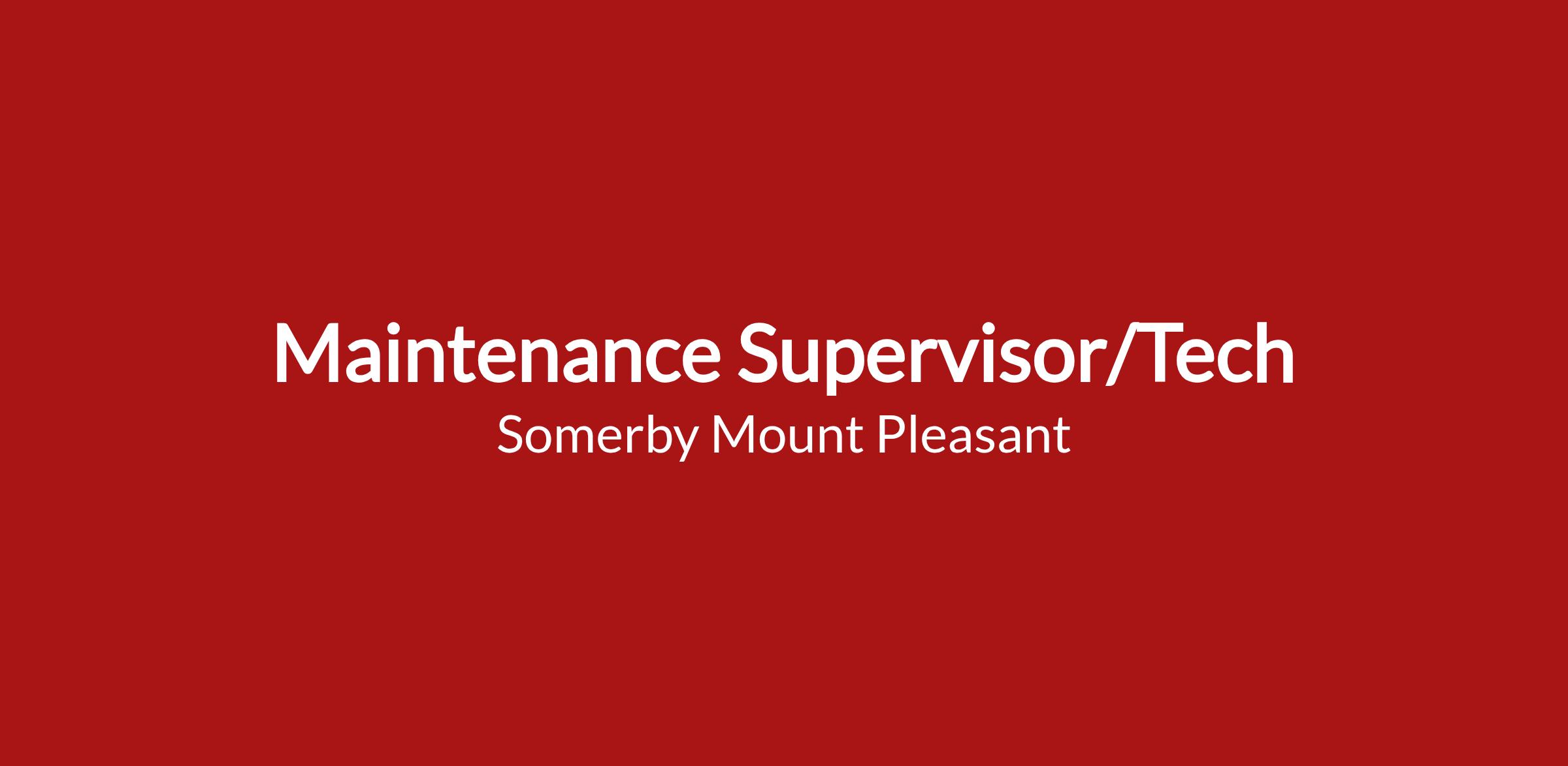 Now Hiring!ย ย Maintenance Supervisor/Tech!