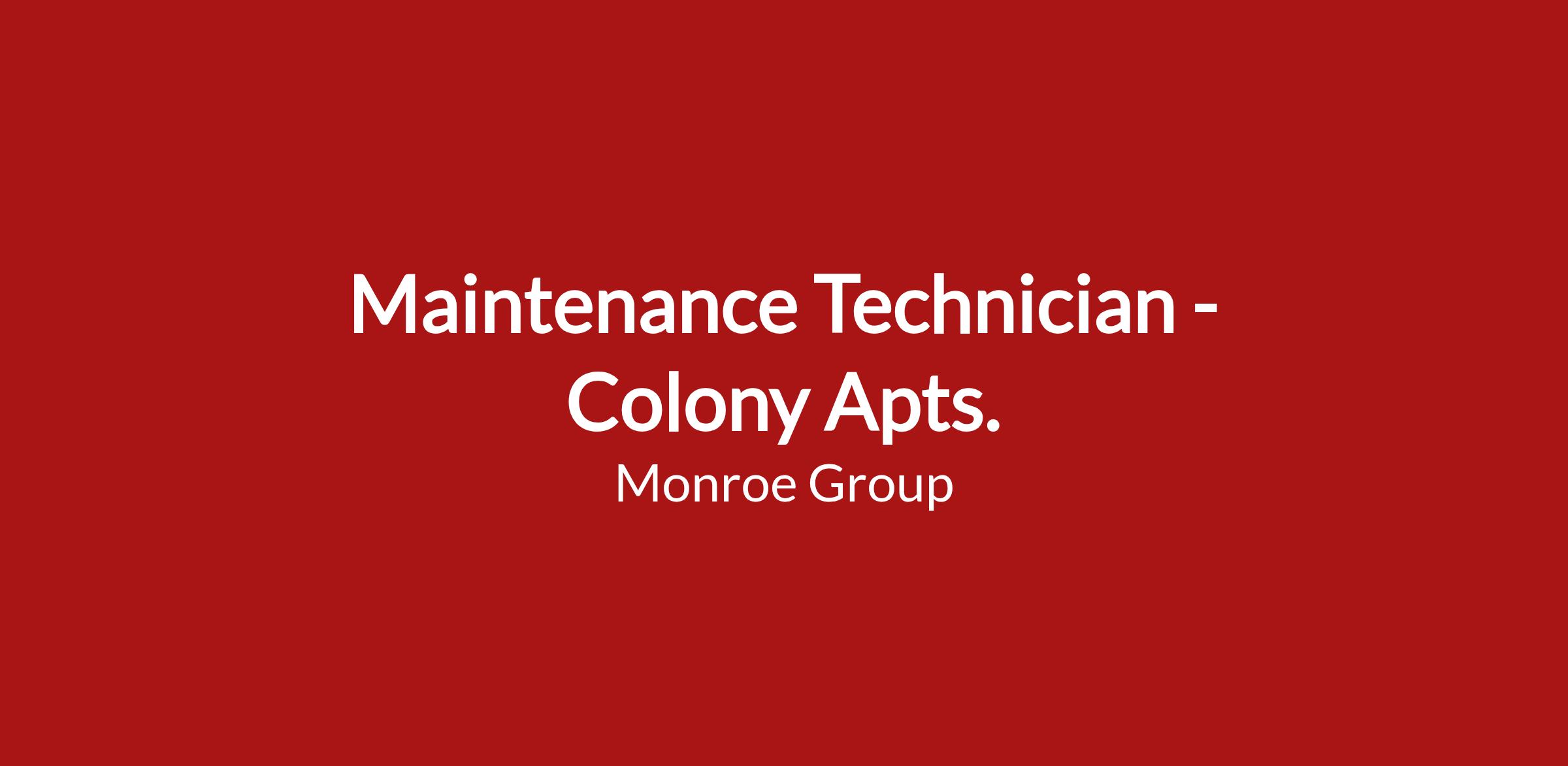 Monroe Group is looking for a Maintenance Technician to join our team!