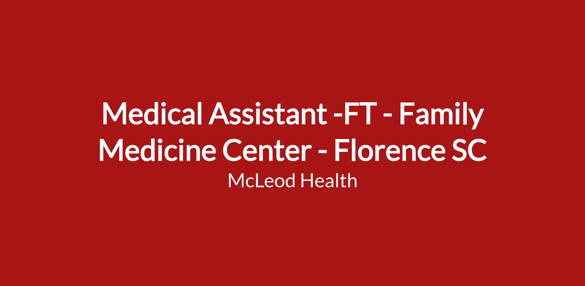 Medical Assistant -FT - Family Medicine Center - Florence SC