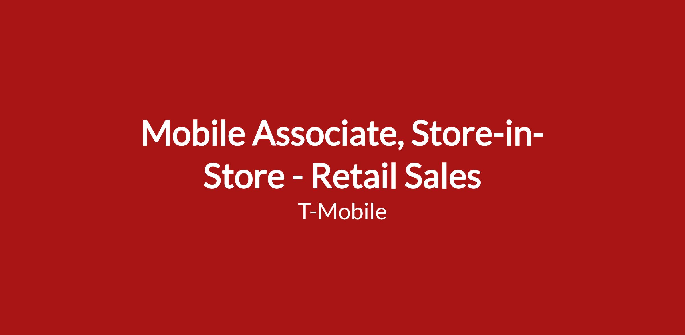 Mobile Associates, Store-in-Store are an integral part of the Retail Team responsible for bringing the T-Mobile brand to life within National Sales partner locations, where active customer engagement is crucial for success. They're ambassadors who create energy and excitement around our products and services. They are obsessed with the connected world and thrive in a high-traffic environment, where technology innovations, customer needs and the Retail experience are continuously evolving. Mobile Associates excel at building and deepening relationships with customers through meaningful interactions. They are skilled at identifying customer needs and are passionate about educating, demonstrating, and recommending solutions. Mobile Associate SiS, exceed their performance targets Doing it the Right Way, by excelling in sales, providing exceptional customer experiences, and meeting quality of sale metrics.