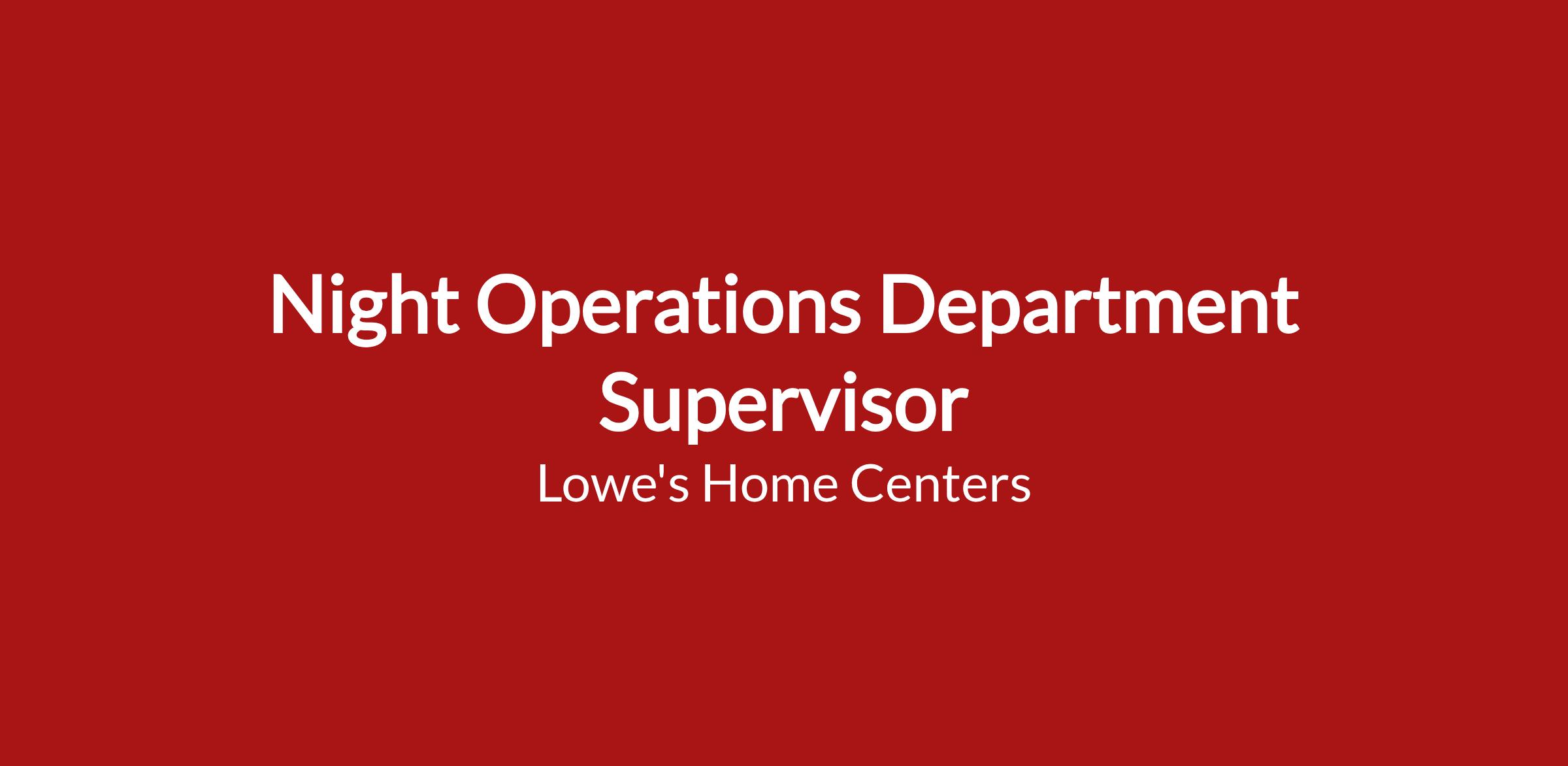 - The Department Supervisor Night Operations is responsible for these activities during the overnight shift during which this manager is often the only key carrying manager in the building