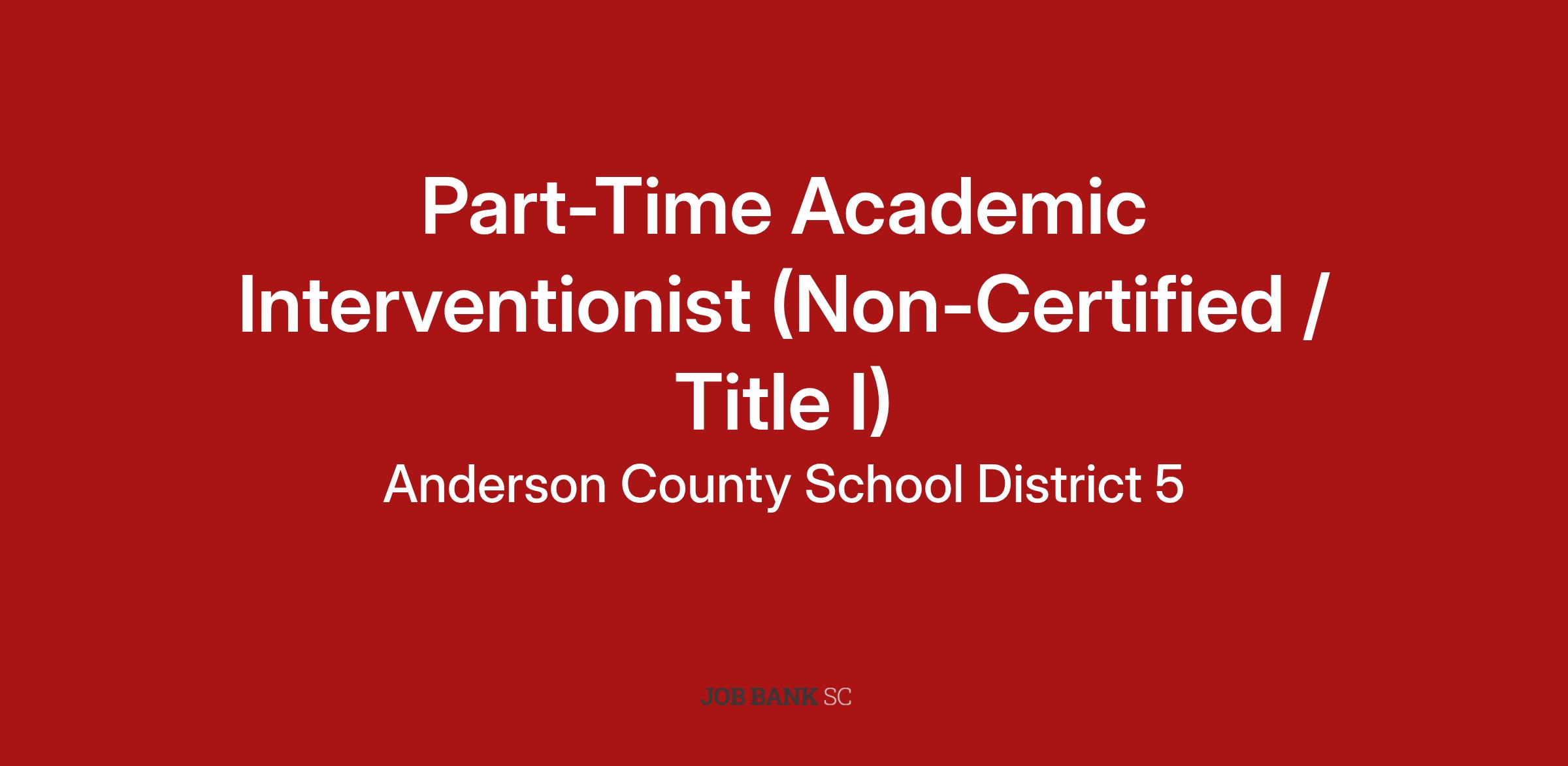 TITLE:Â Â Part-Time Academic Interventionist (Non-Certified / Title I)