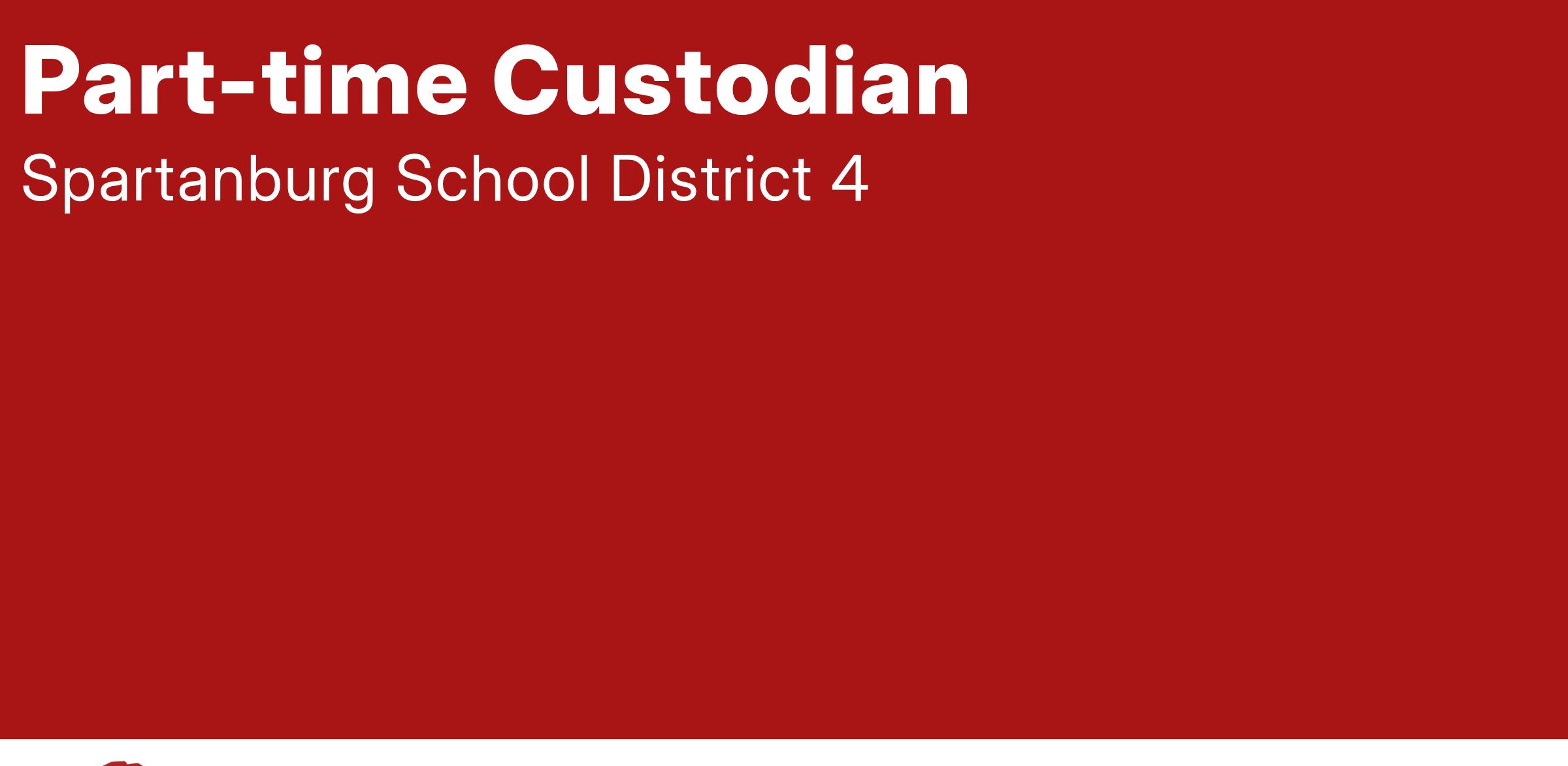 Spartanburg Country School District Four is currently taking applications for qualified individuals to fill a part-time custodial position.Ā Applicants must be able to physically lift 50 pounds or more, walk long distances pushing heavy equipment, and be able to detail-clean classrooms.Ā Custodial experience is preferred but not required.