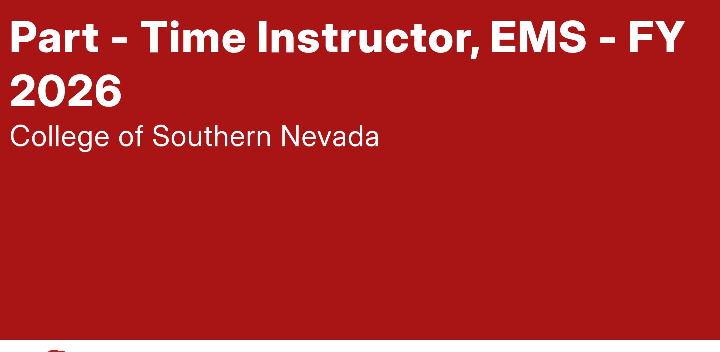 The College of Southern Nevada (CSN) emergency medical services (EMS) instructor must meet the qualifications of the Southern Nevada Health Department guidelines and the requirements established by the State of Nevada.