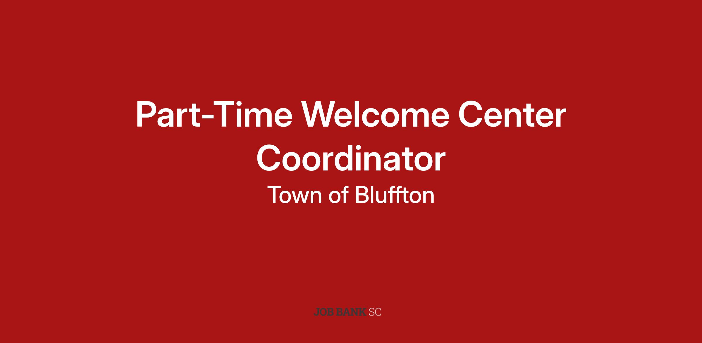 The purpose of this position is to provide customer service to travelers, tourists, visitors, new residents, residents, or other individuals visiting or calling the Welcome Center, as well as promote the community to encourage people to visit the Town of Bluffton. Work is performed under the supervision of the Special Events Manager. Work schedule is under 30 hours/week. Â
